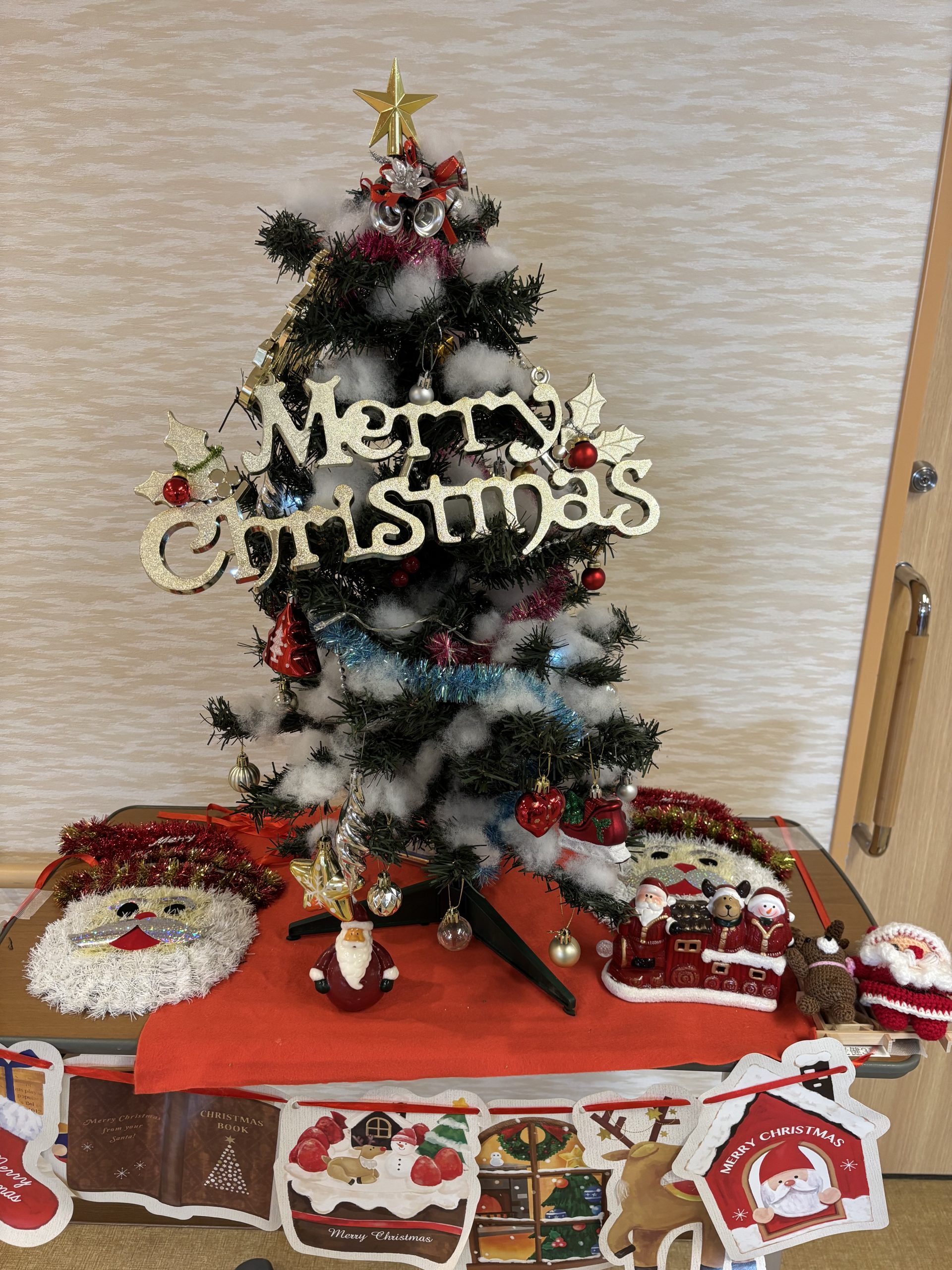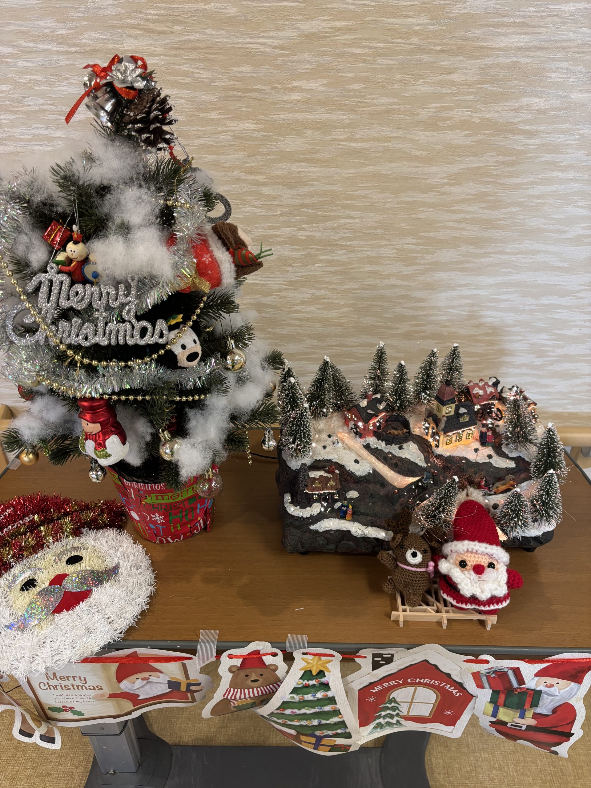 さらに、2F・3Fの老健、各フロアにも小さなツリー🎄や冬のオブジェ☃️を飾り、施設全体がクリスマス色に包まれていました。