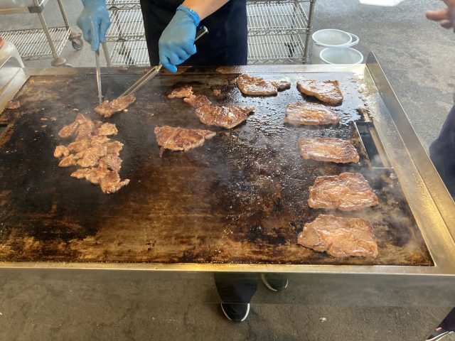 お肉、焼いてます。