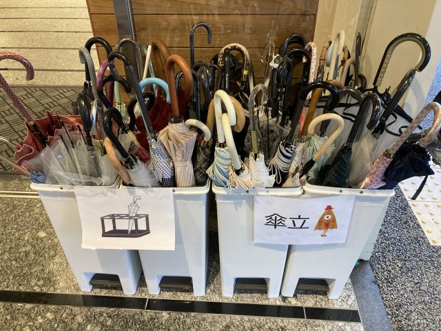 前日に、翌日は雨☔との情報もあり、急遽、傘立てを用意しました。