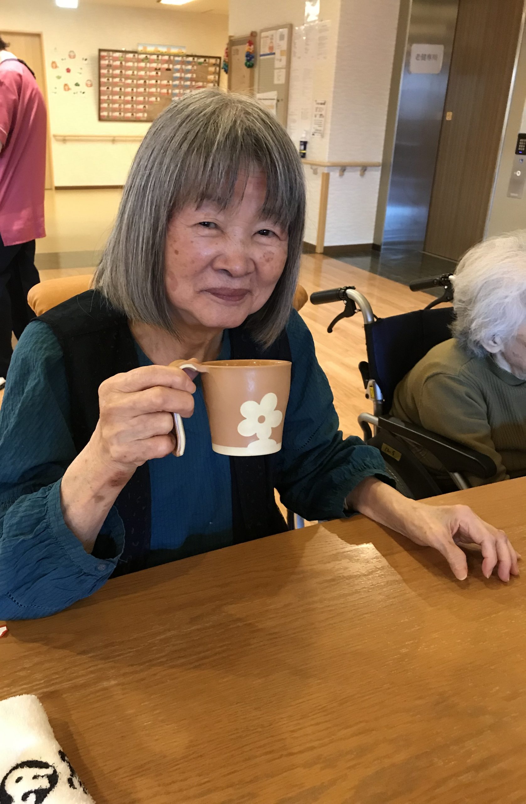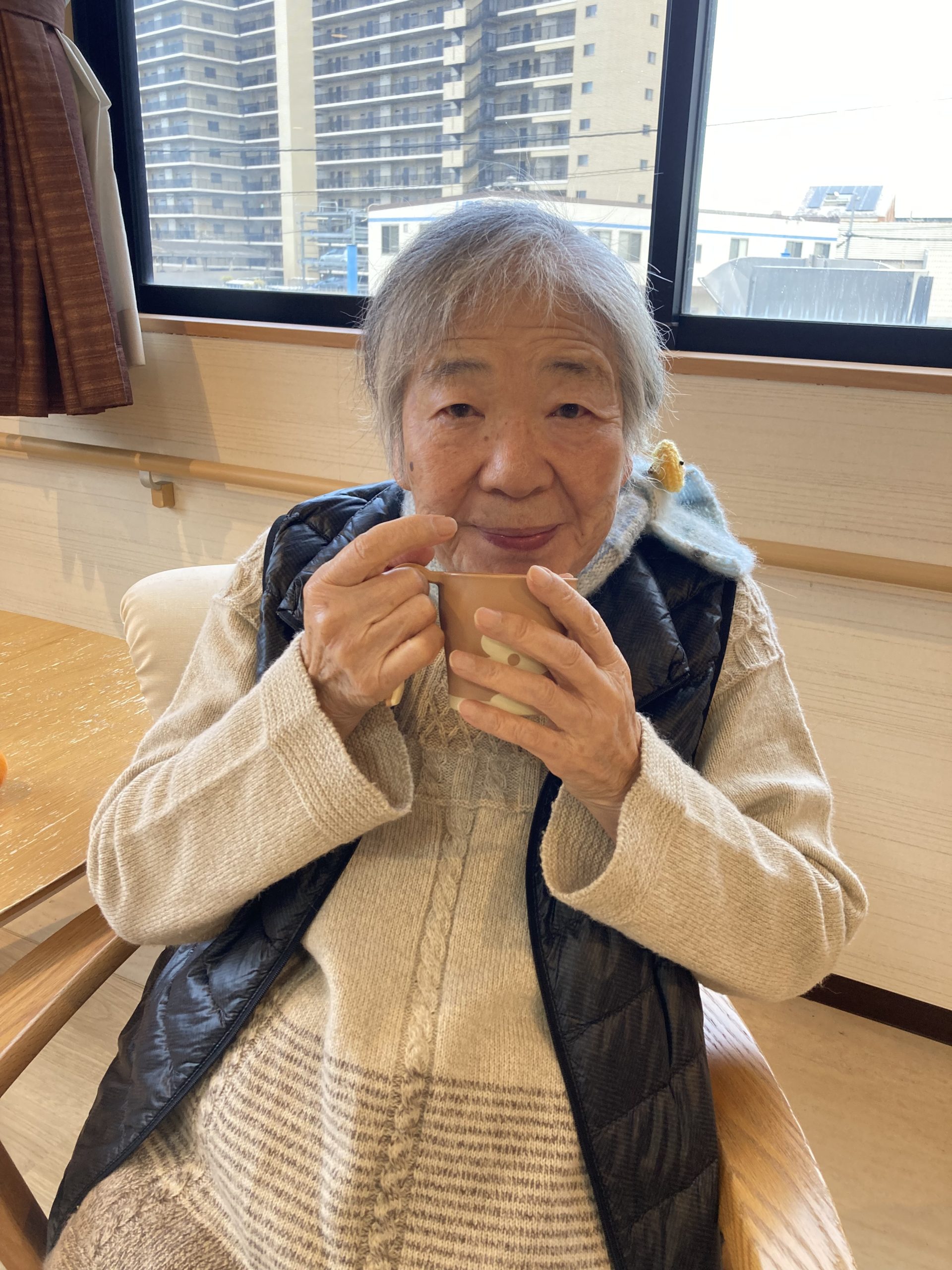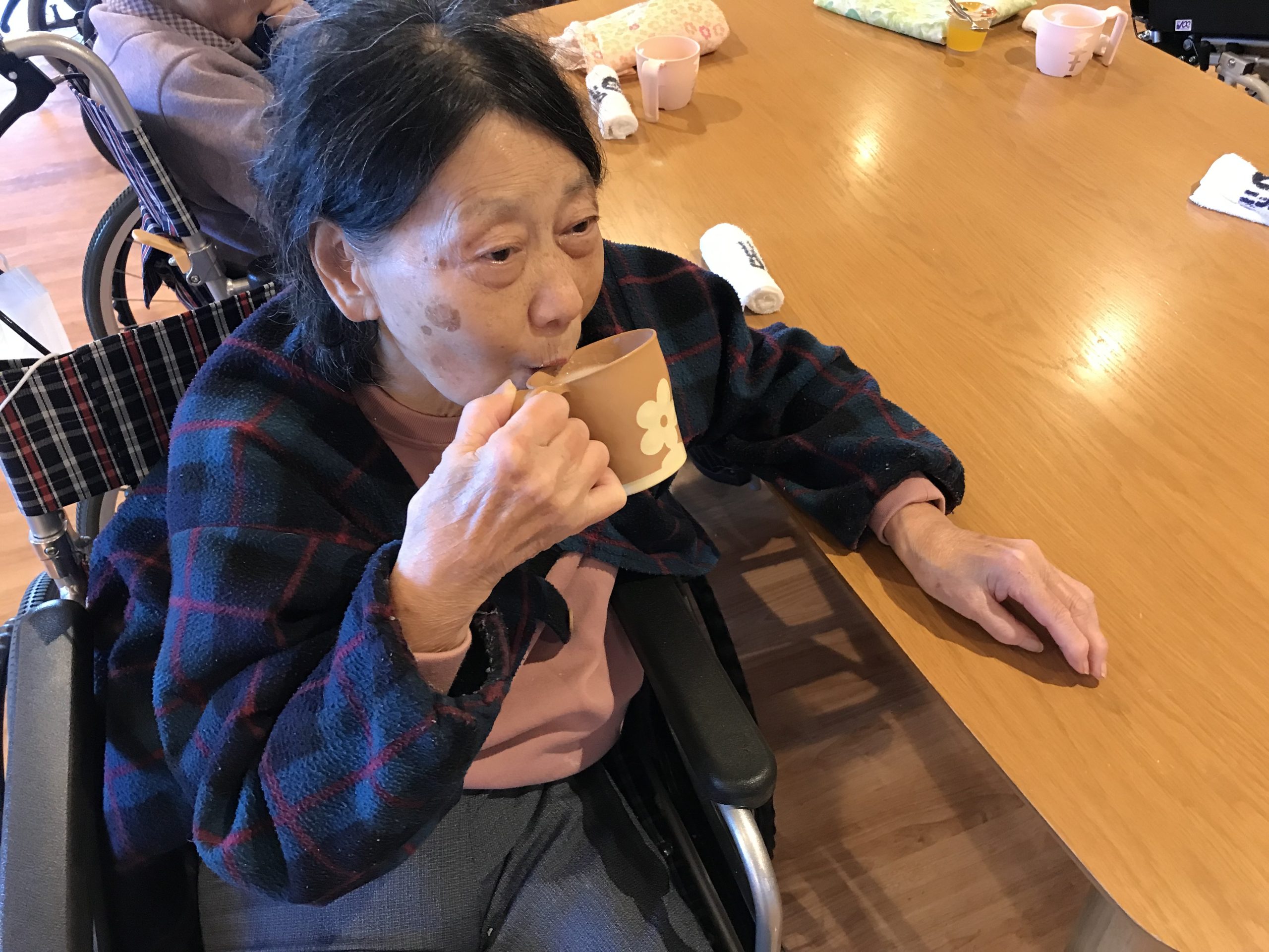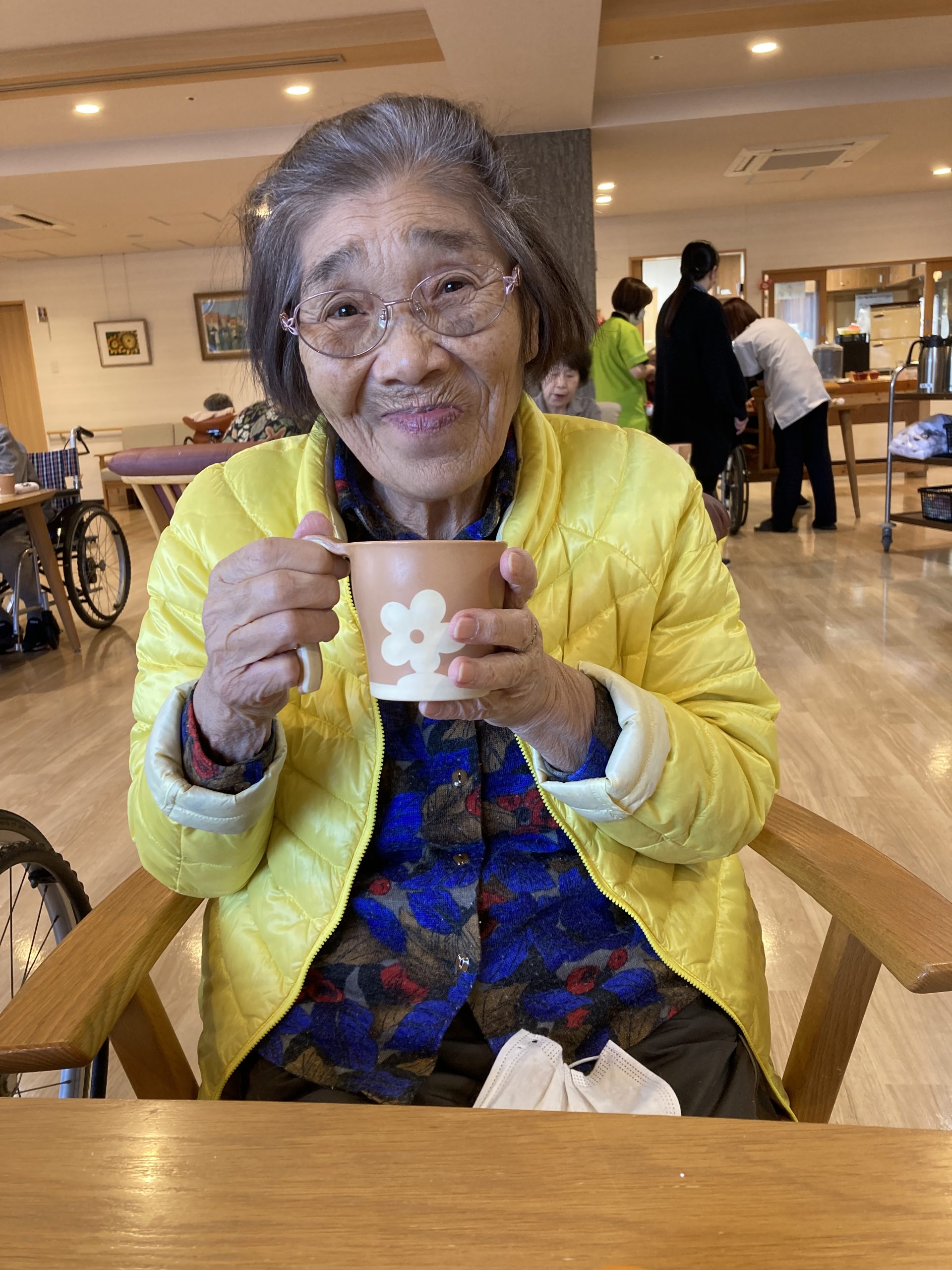 やさしい甘さと温かさが広がる一杯に、利用者様からは「ほっとするね。」といった声が聞かれ、自然と笑顔がこぼれていました。
