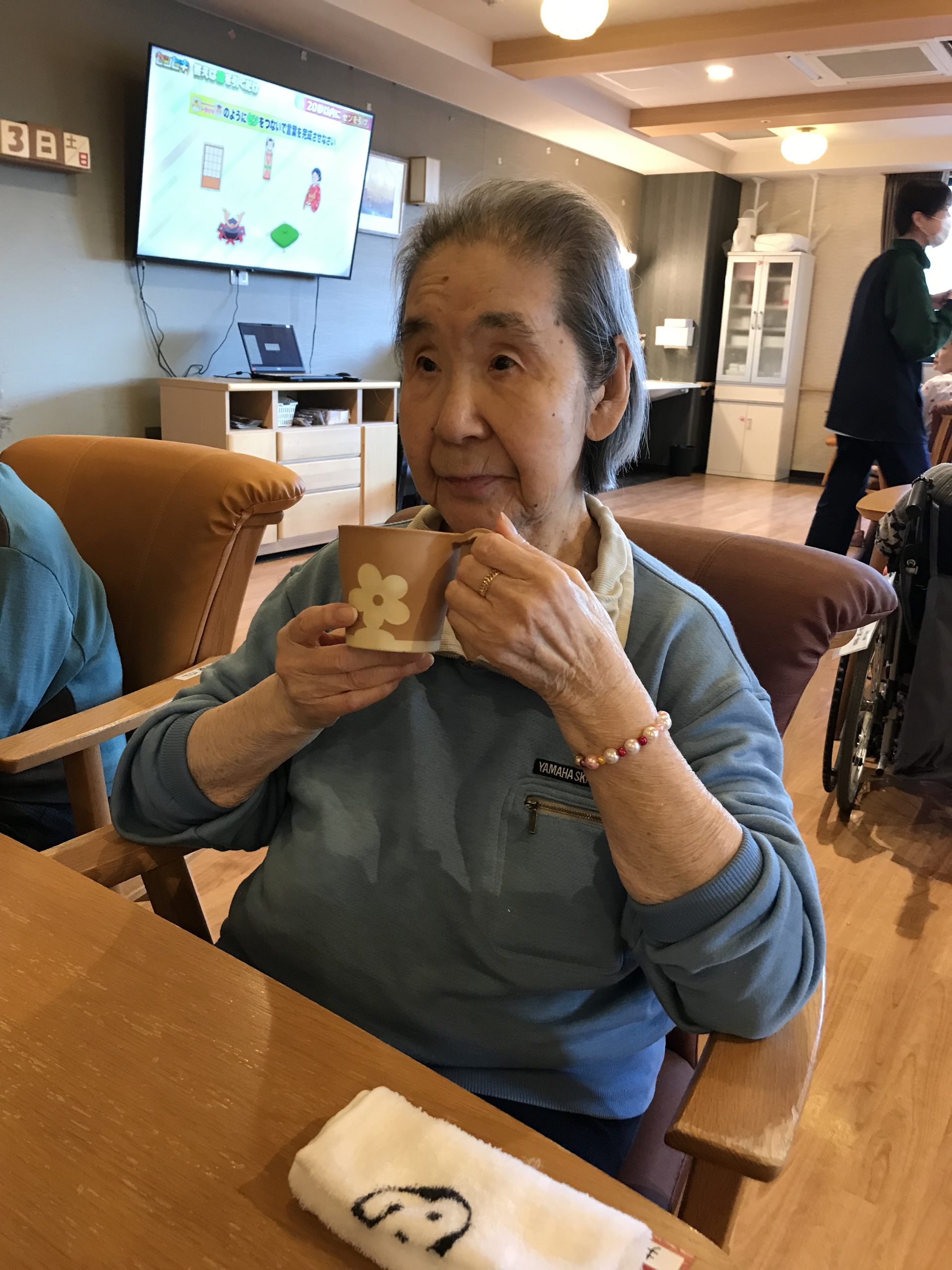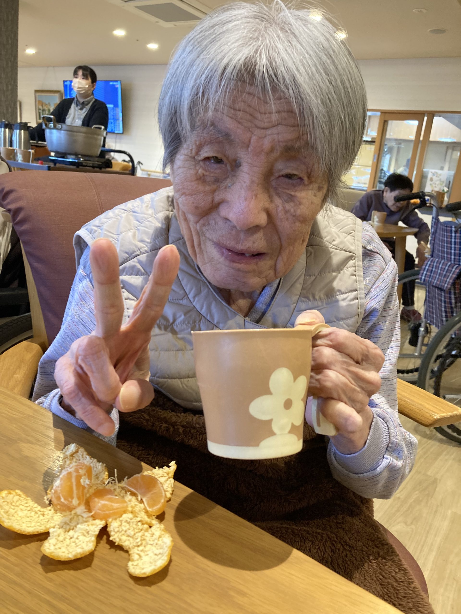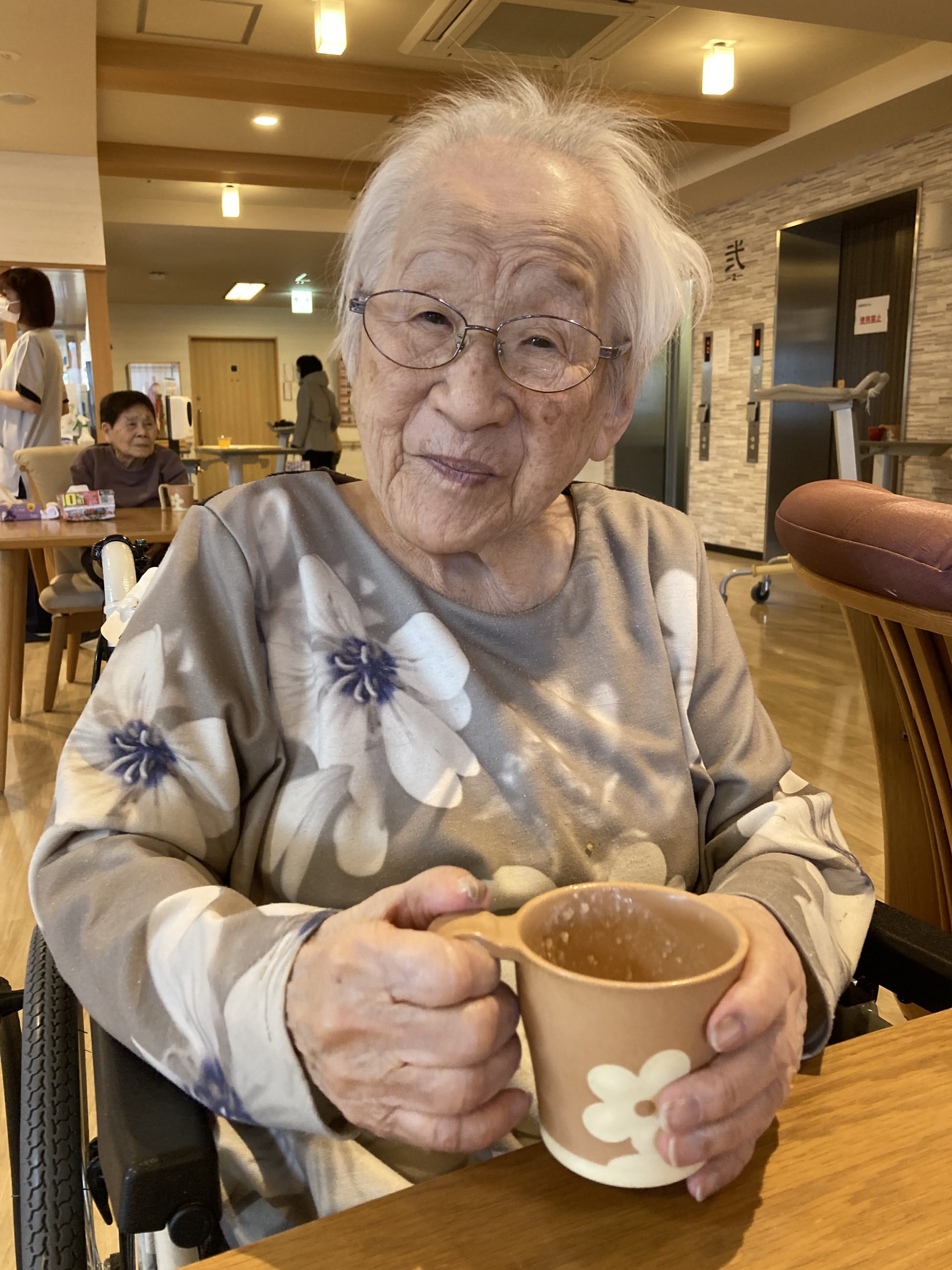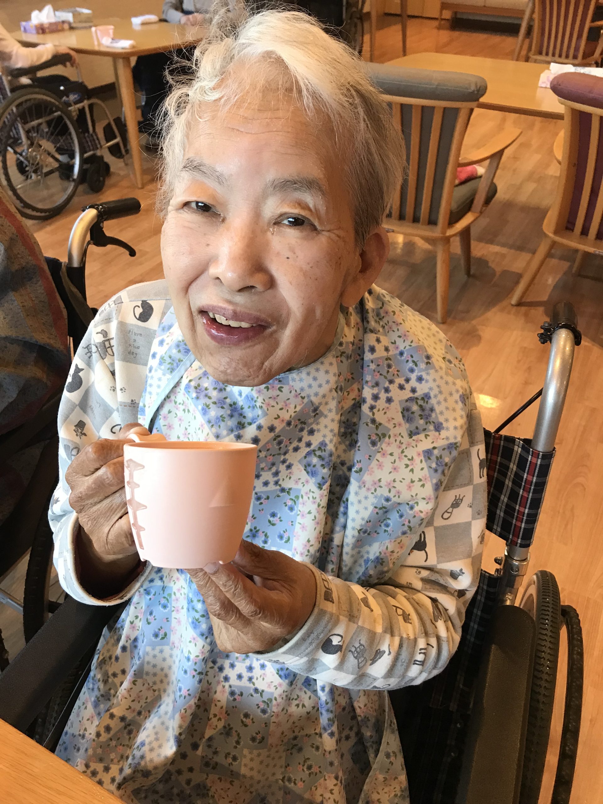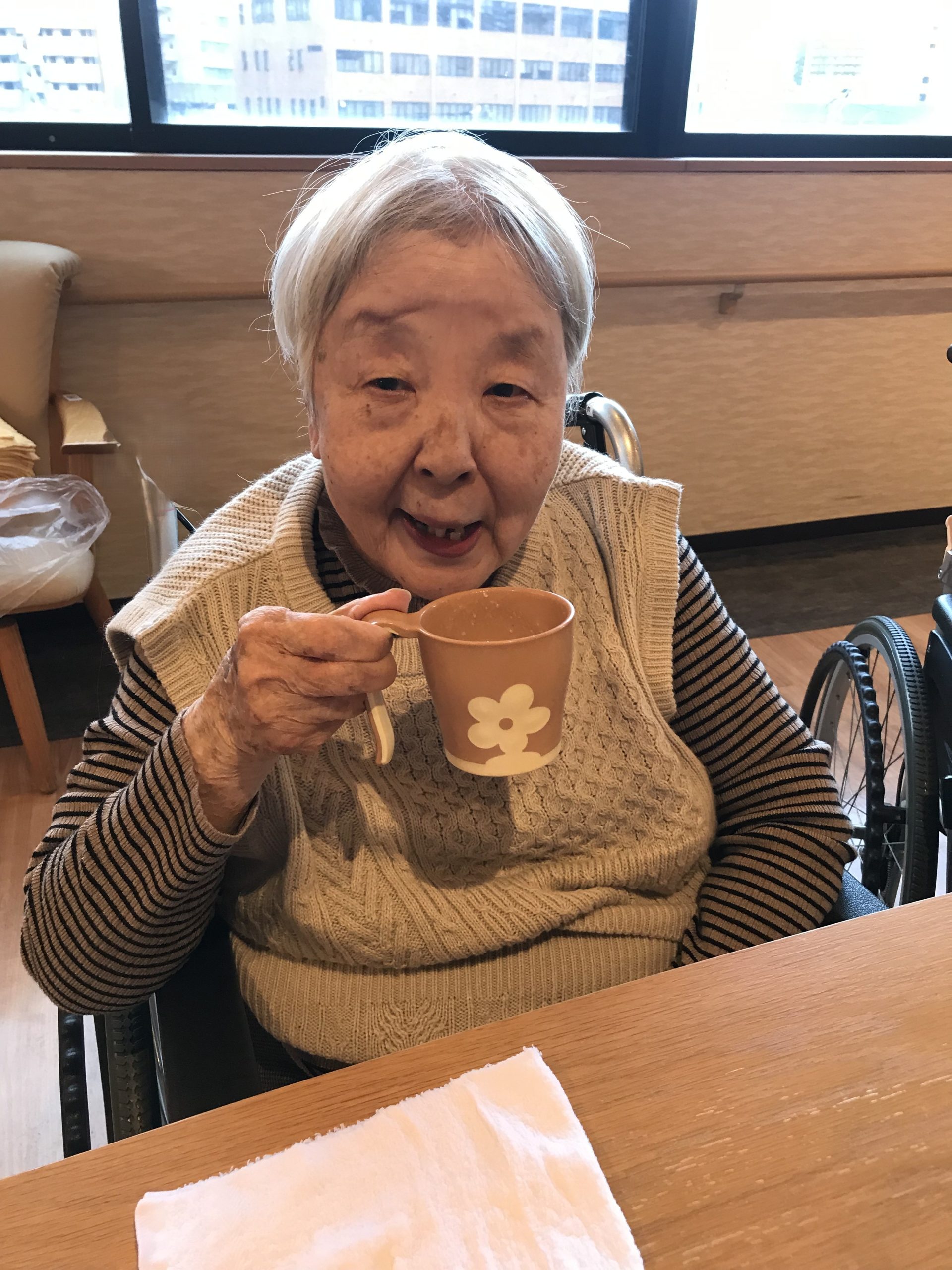 やさしい甘さと温かさが広がる一杯に、利用者様からは「ほっとするね。」といった声が聞かれ、自然と笑顔がこぼれていました。