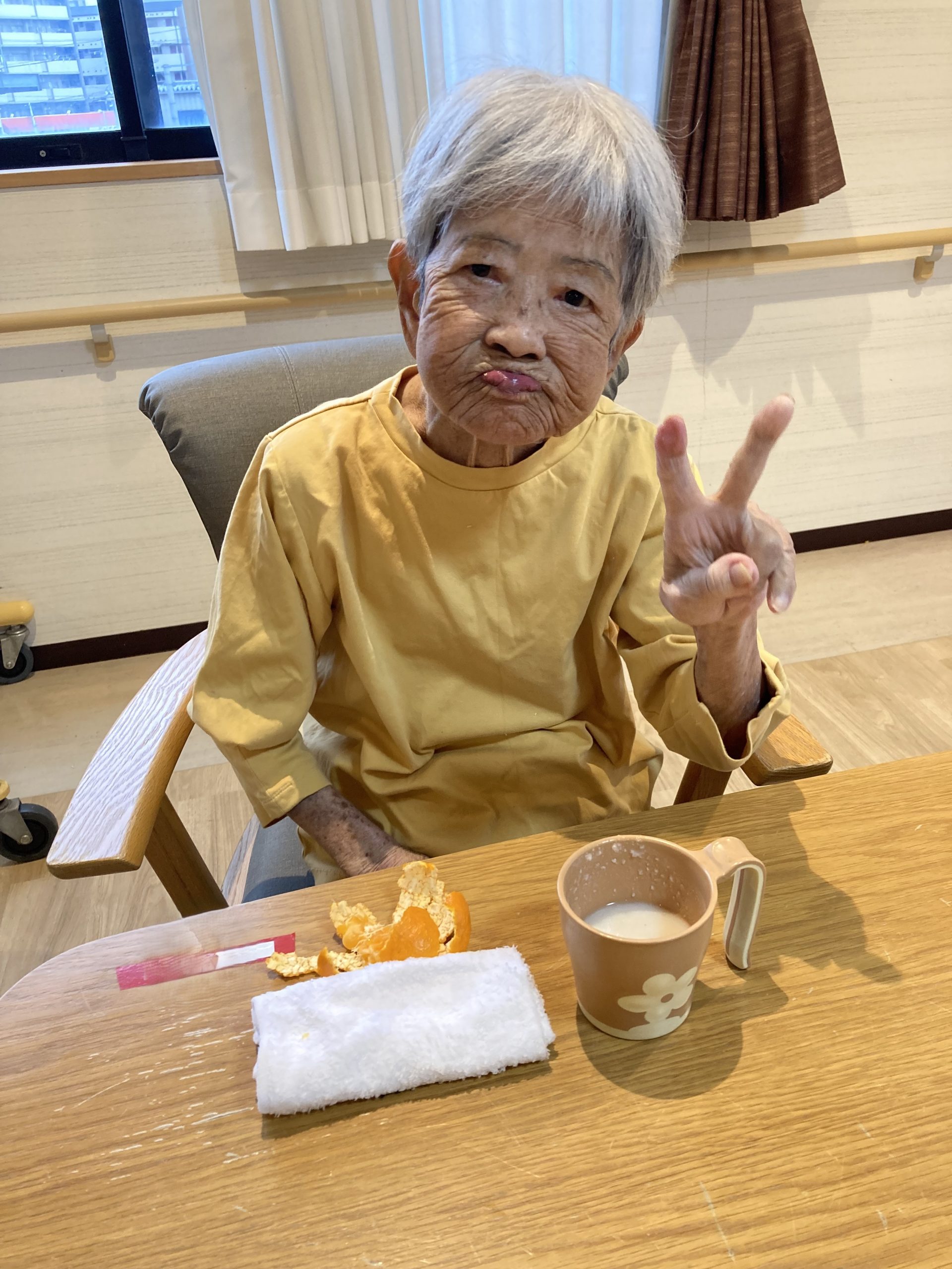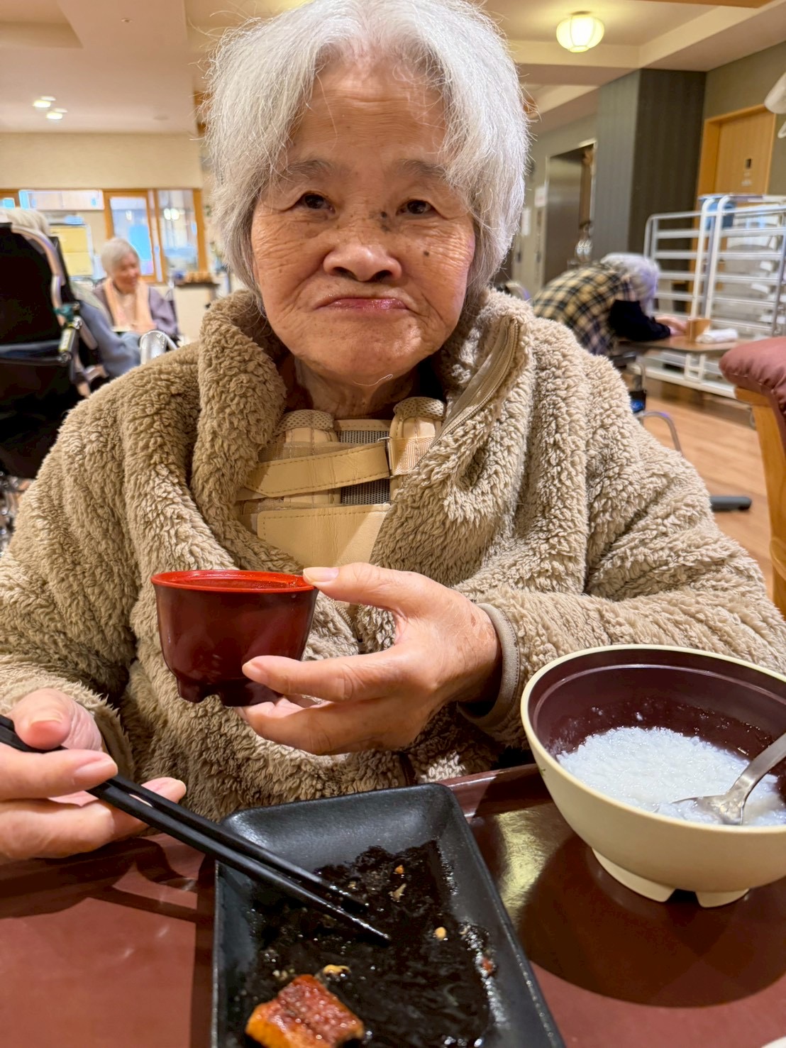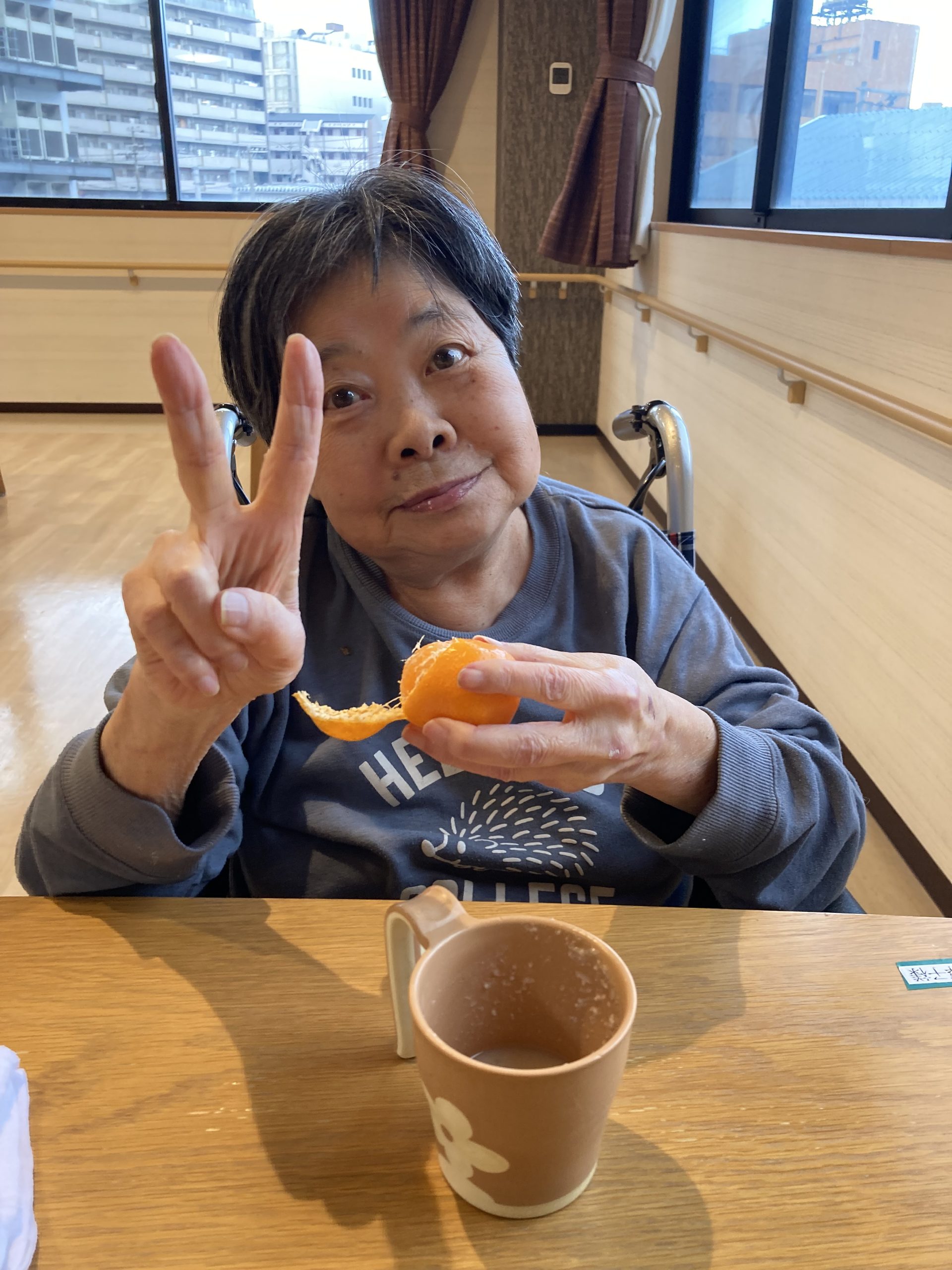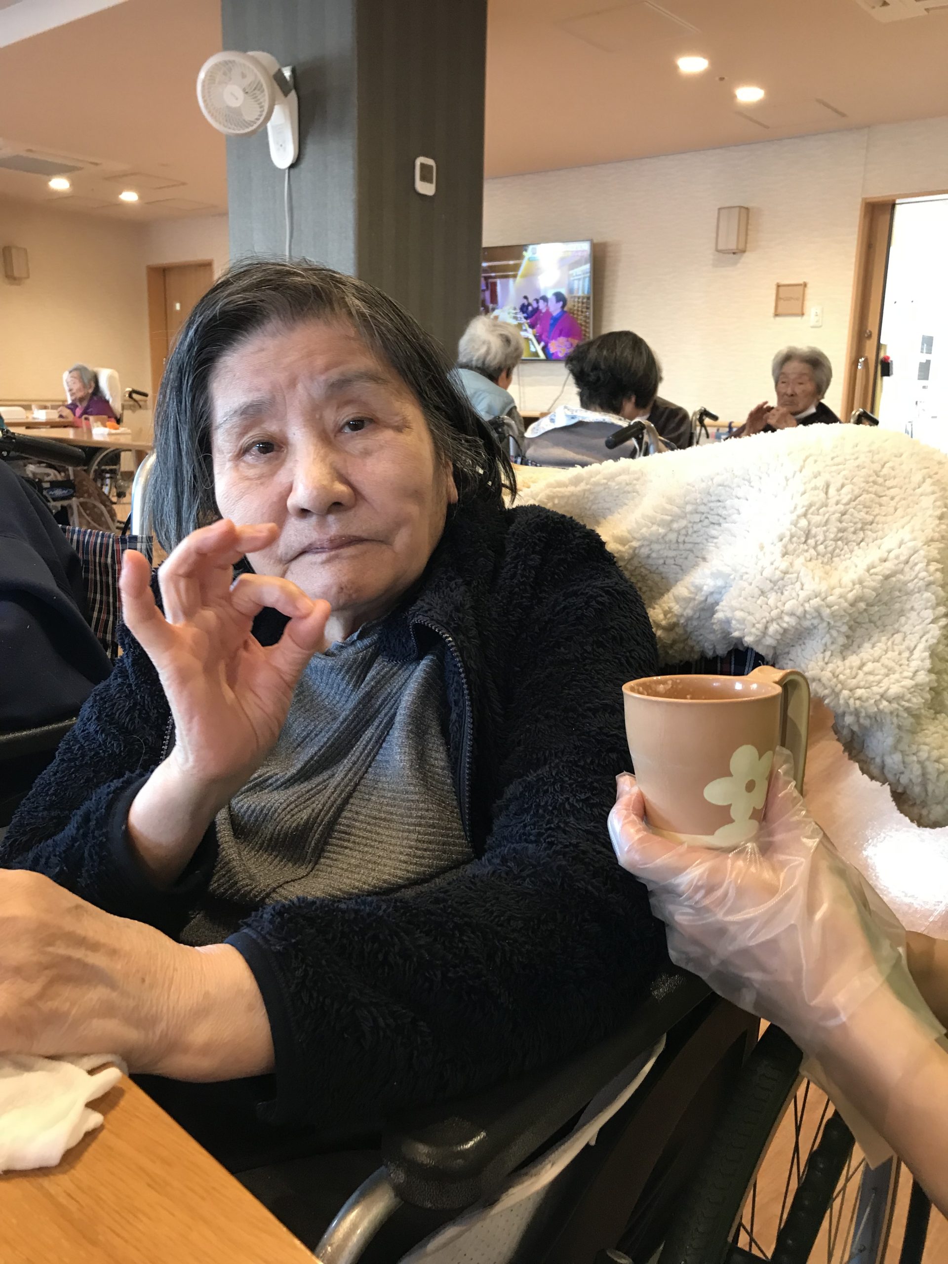 やさしい甘さと温かさが広がる一杯に、利用者様からは「ほっとするね。」といった声が聞かれ、自然と笑顔がこぼれていました。