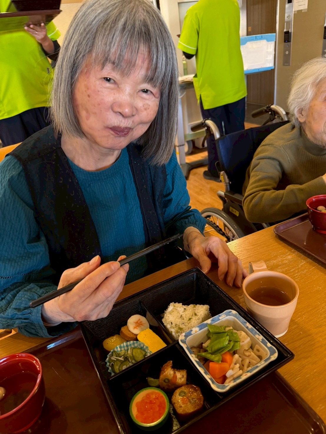 利用者様は「豪華やね。」と笑顔で召し上がり、新春の味わいを楽しまれていました。