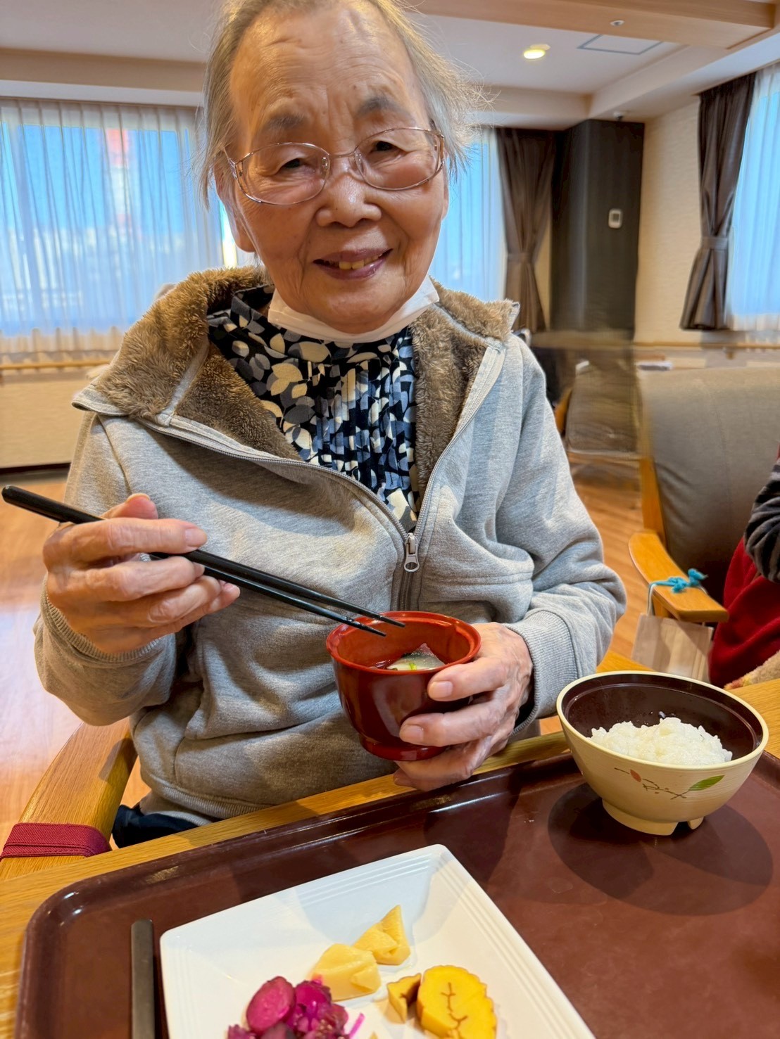 新年二日目の朝も、お正月らしい献立に、皆さんの表情がほころぶ一日の始まりとなりました。
