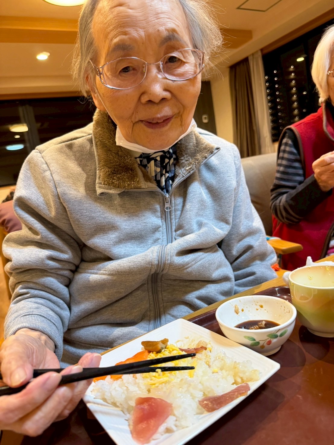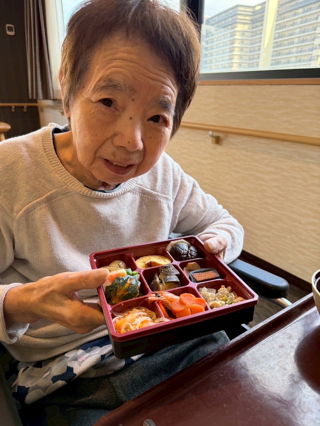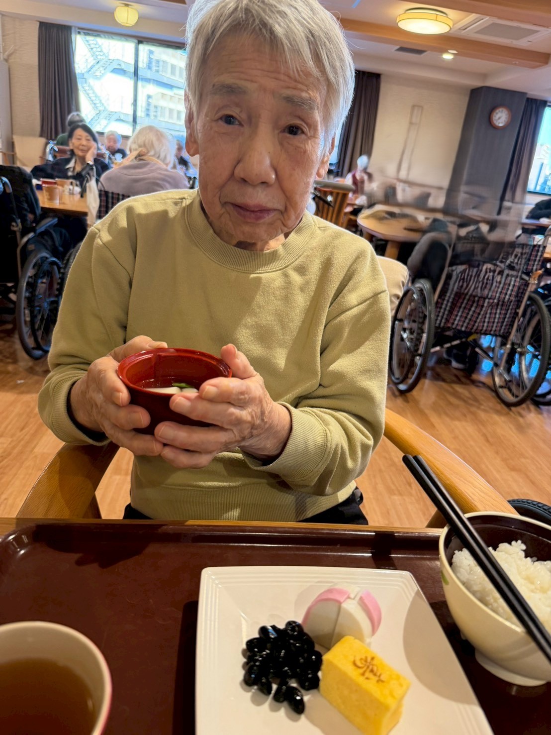 利用者様からは「わぁ、立派やね。」「これを食べると一年が終わるね。」といった声が聞かれ、皆さんゆっくりと味わいながら年の瀬を過ごされました。