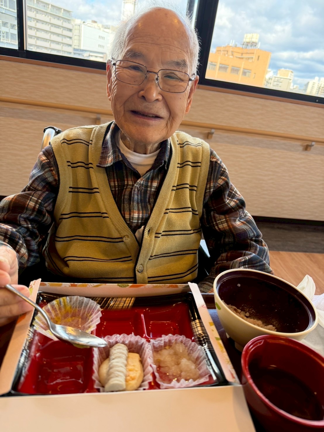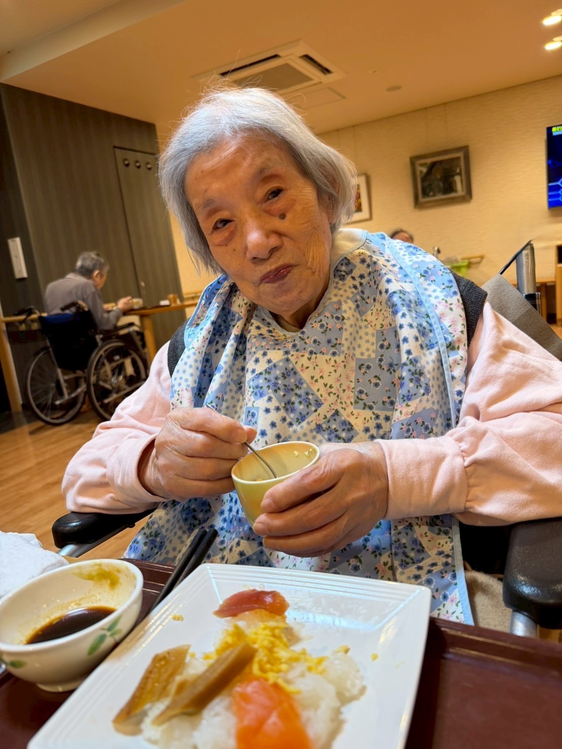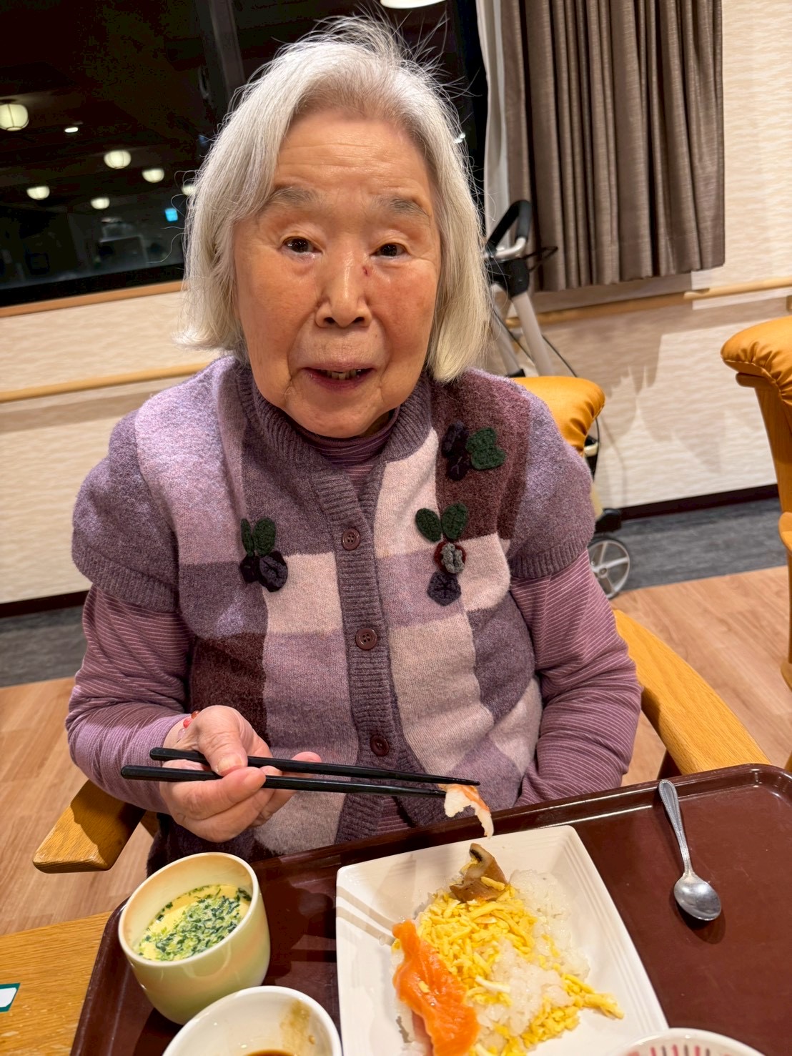利用者様からは「わぁ、立派やね。」「これを食べると一年が終わるね。」といった声が聞かれ、皆さんゆっくりと味わいながら年の瀬を過ごされました。