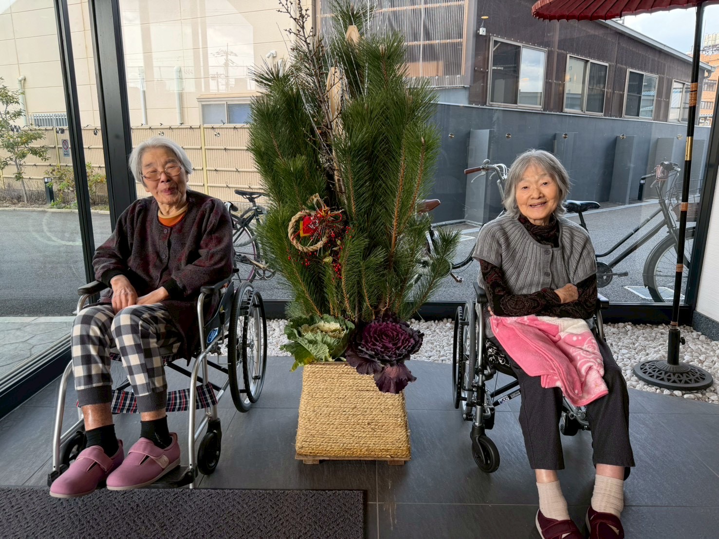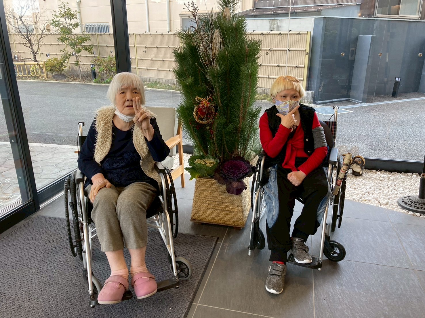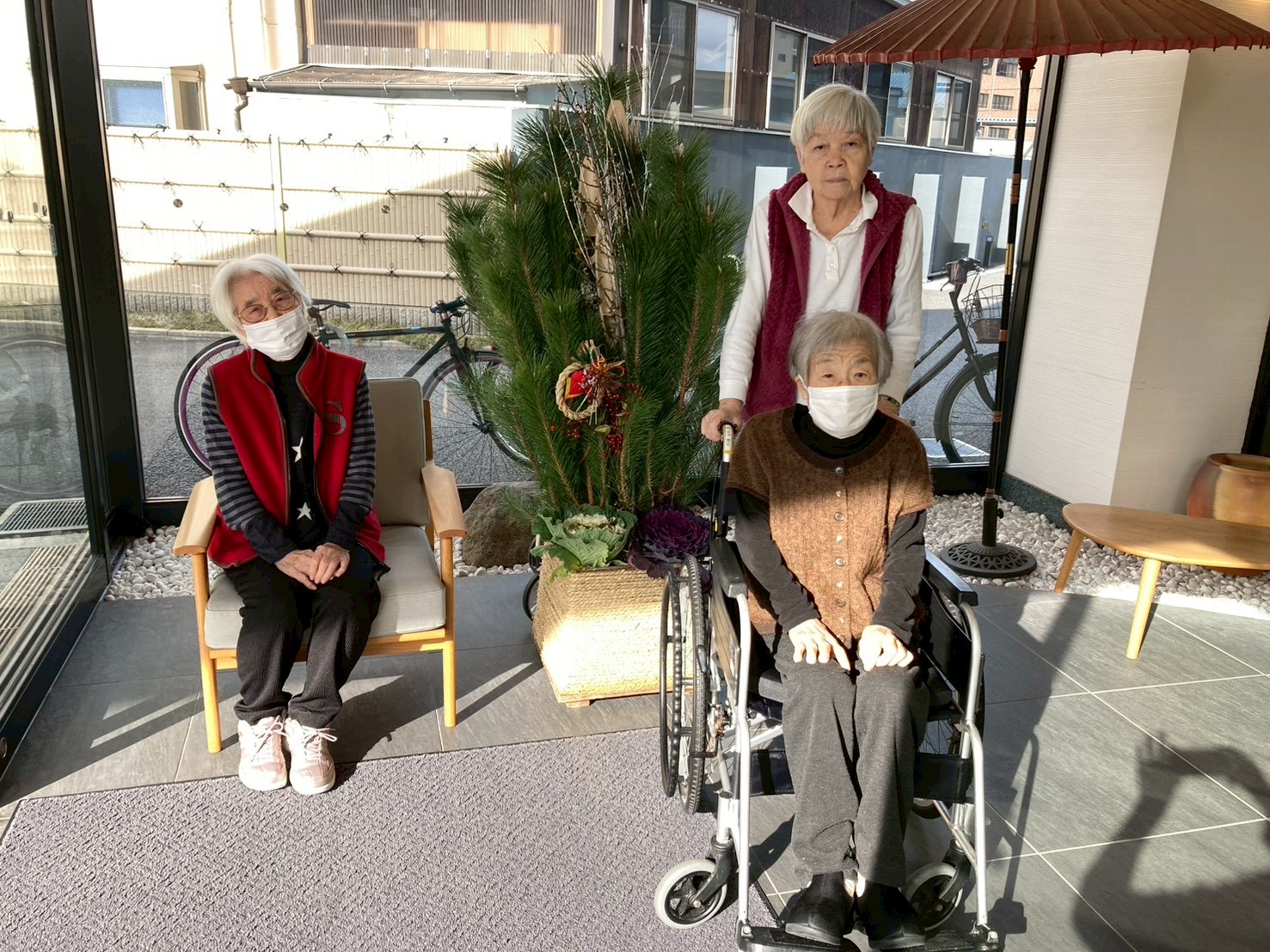 利用者様は「お正月らしくていいね。」と笑顔で門松🎍をご覧になり、皆さまの晴れやかな表情を一枚一枚丁寧に収めました。