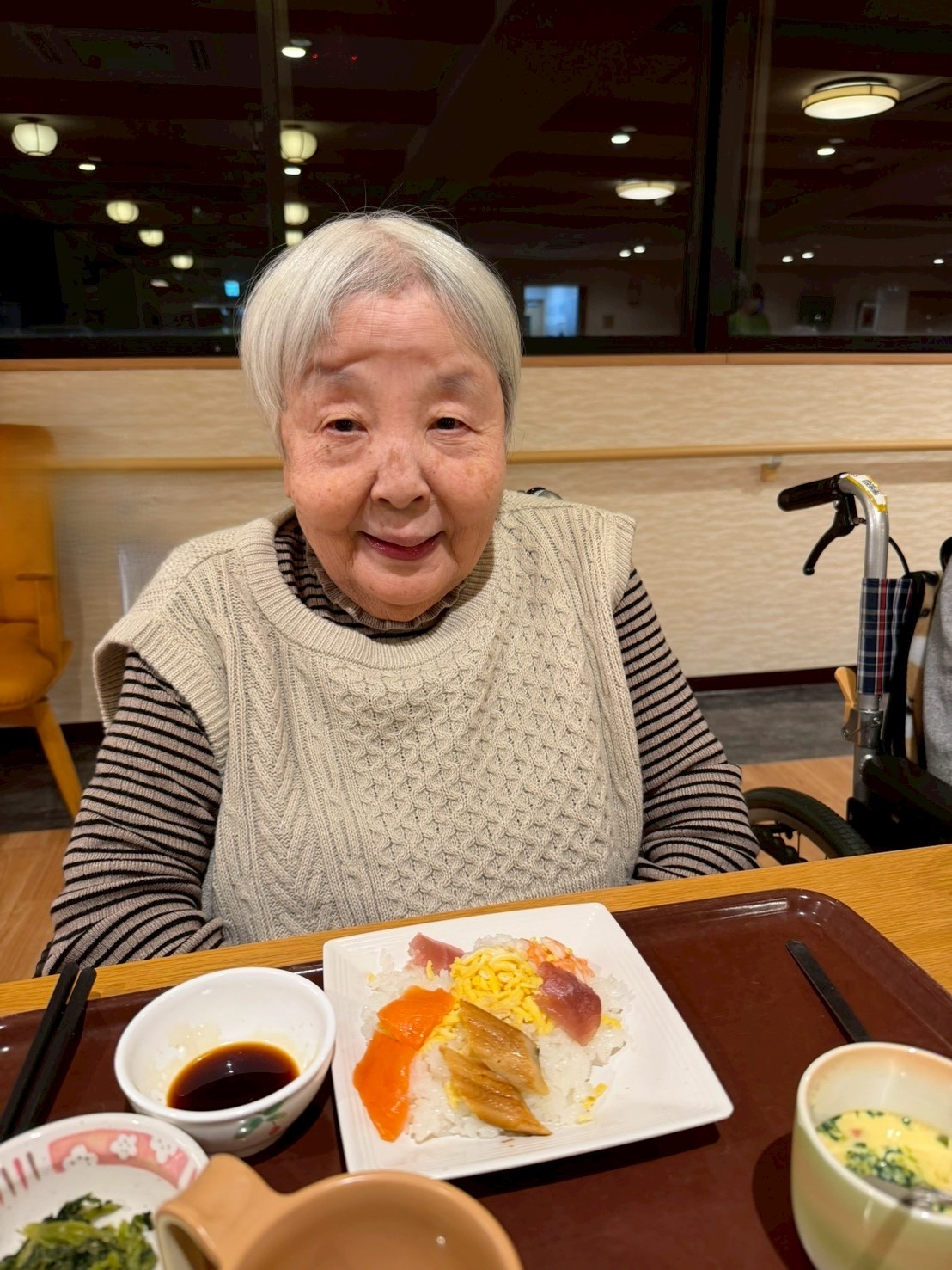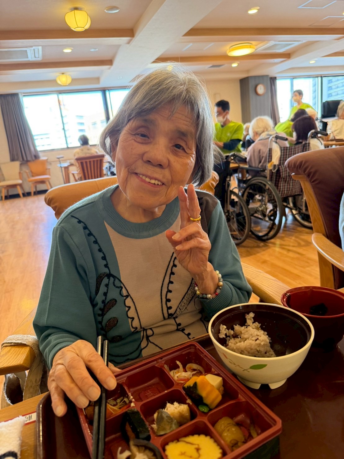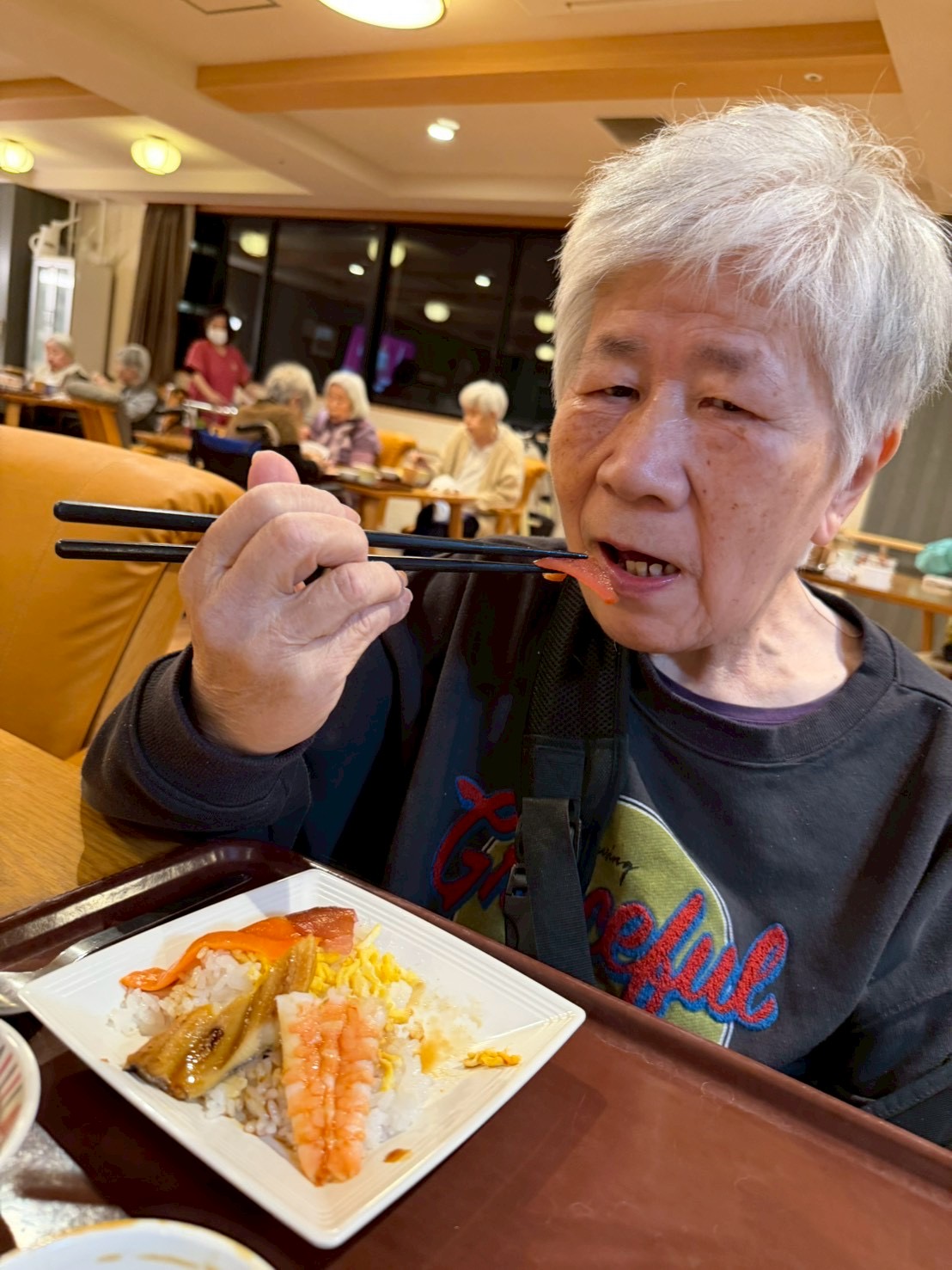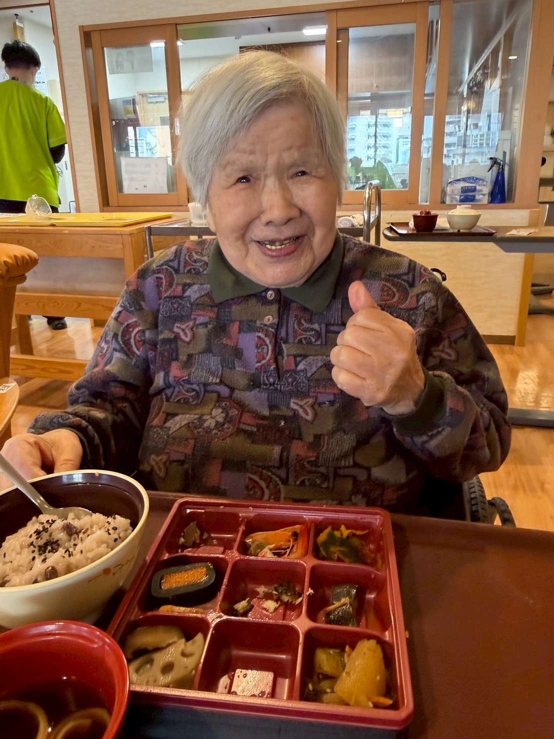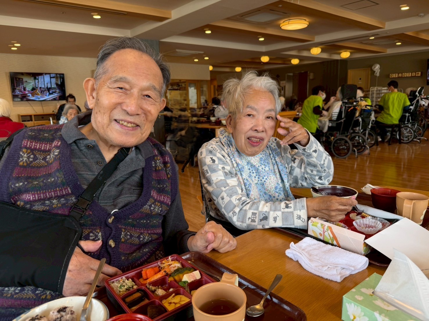 食堂では、「わぁ、きれい。」「お正月らしくてうれしい。」といった声が聞かれ、利用者様はゆっくりと丁寧に召し上がっておられました。
