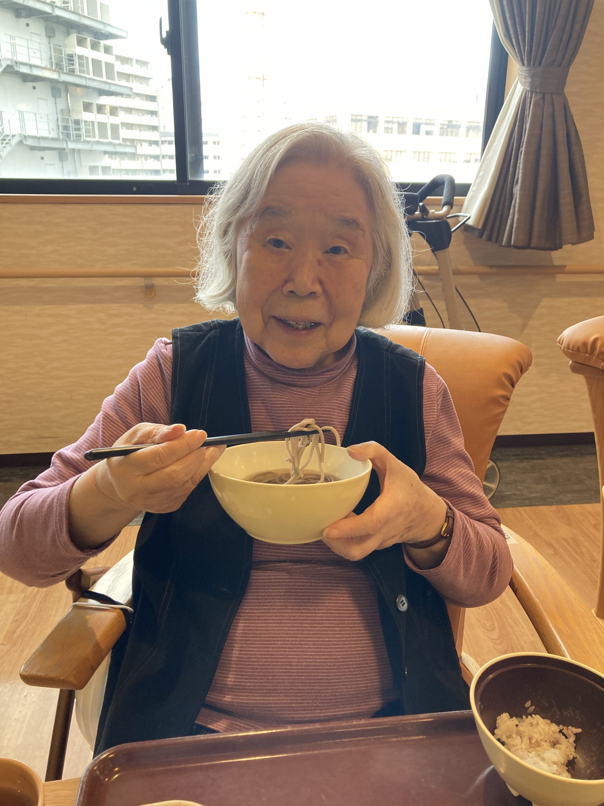 少し振り返り、菜乃花では毎年恒例、大晦日の昼食に「年越しそば🍜」が提供されました。