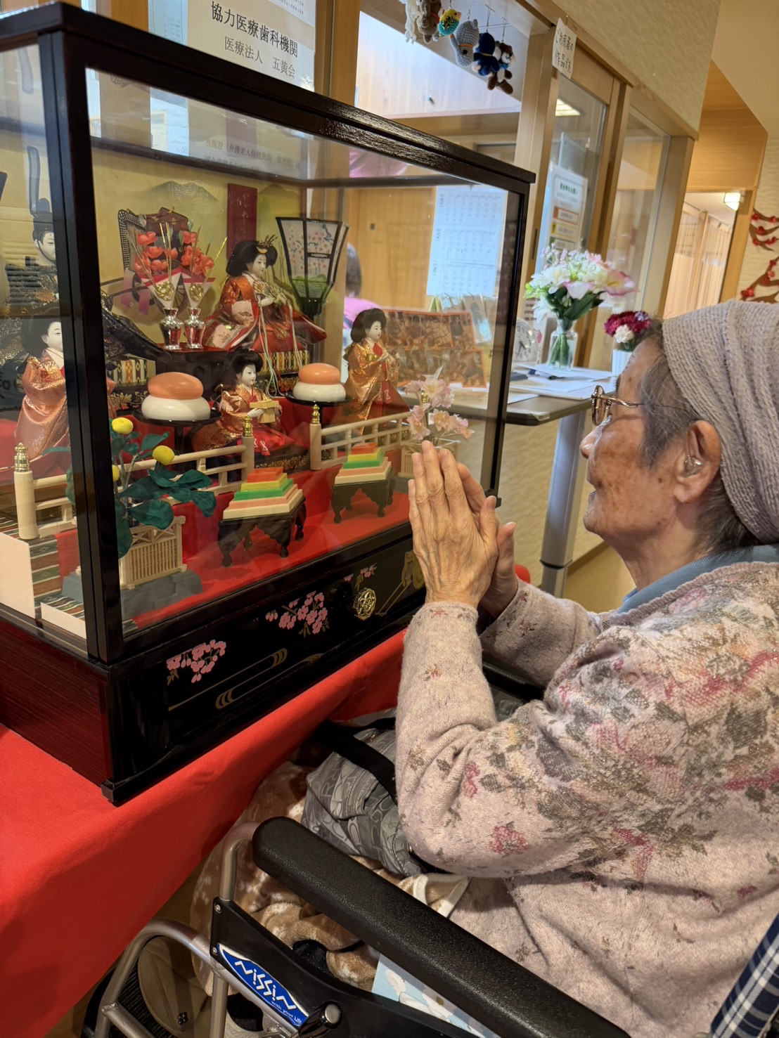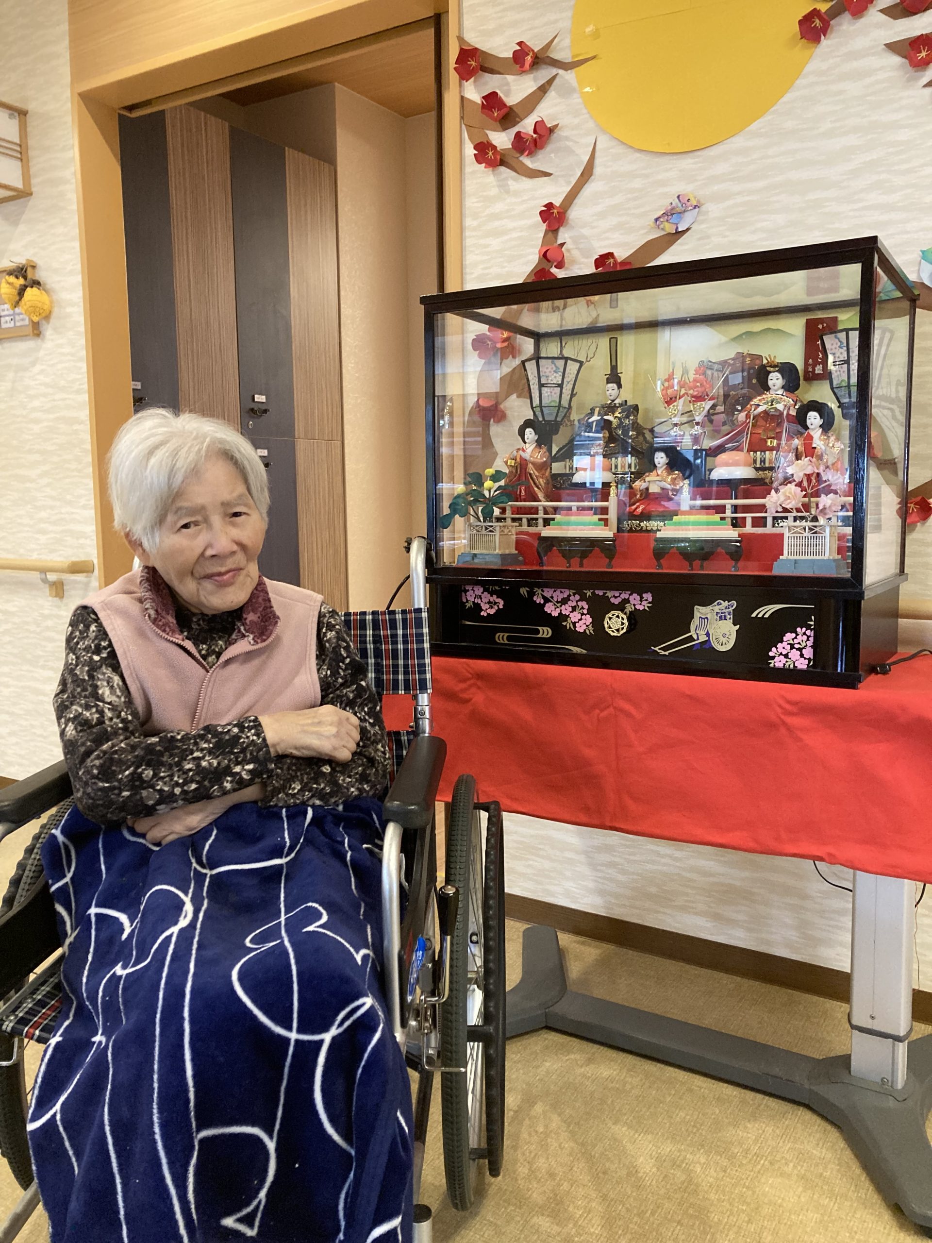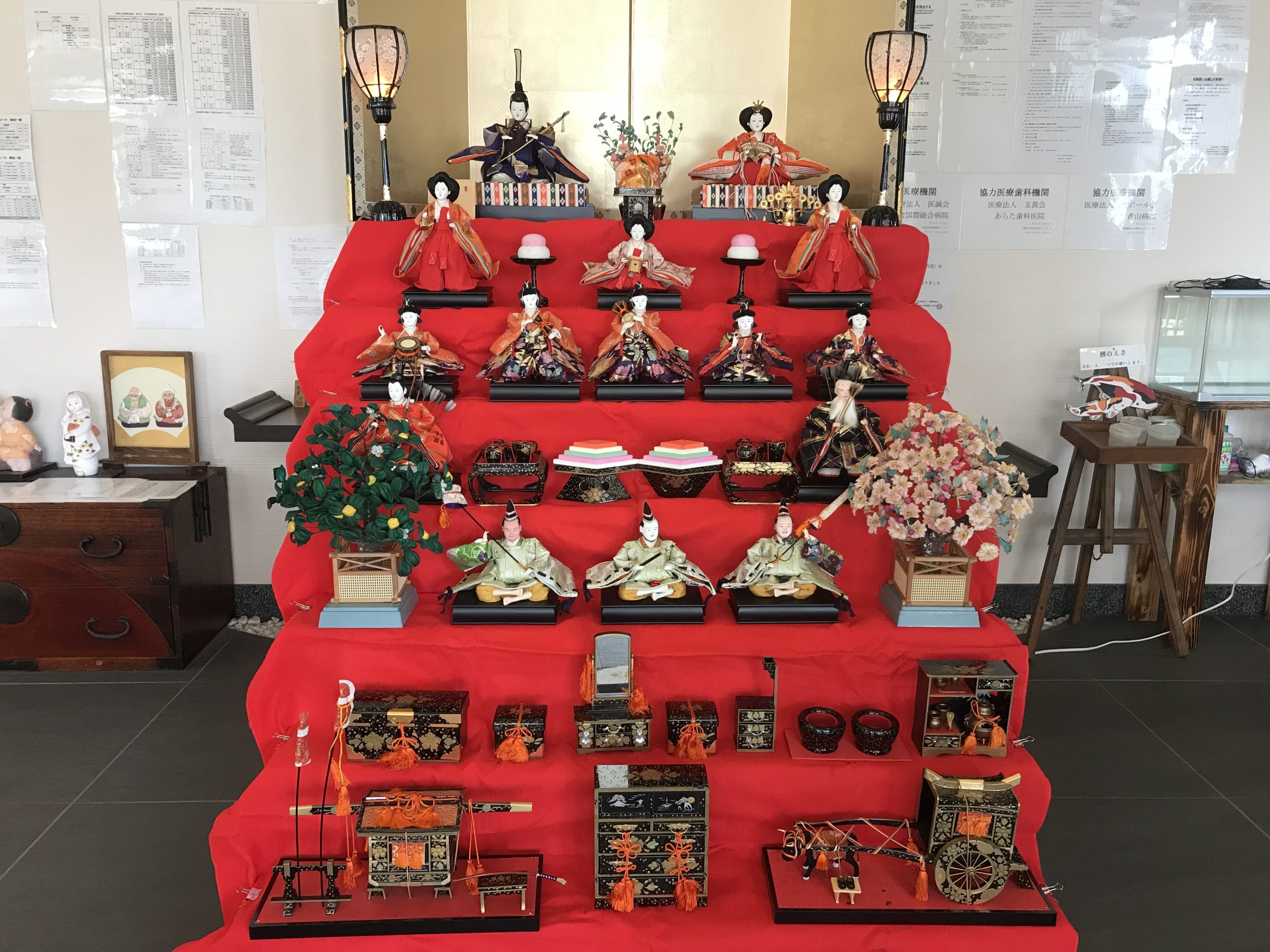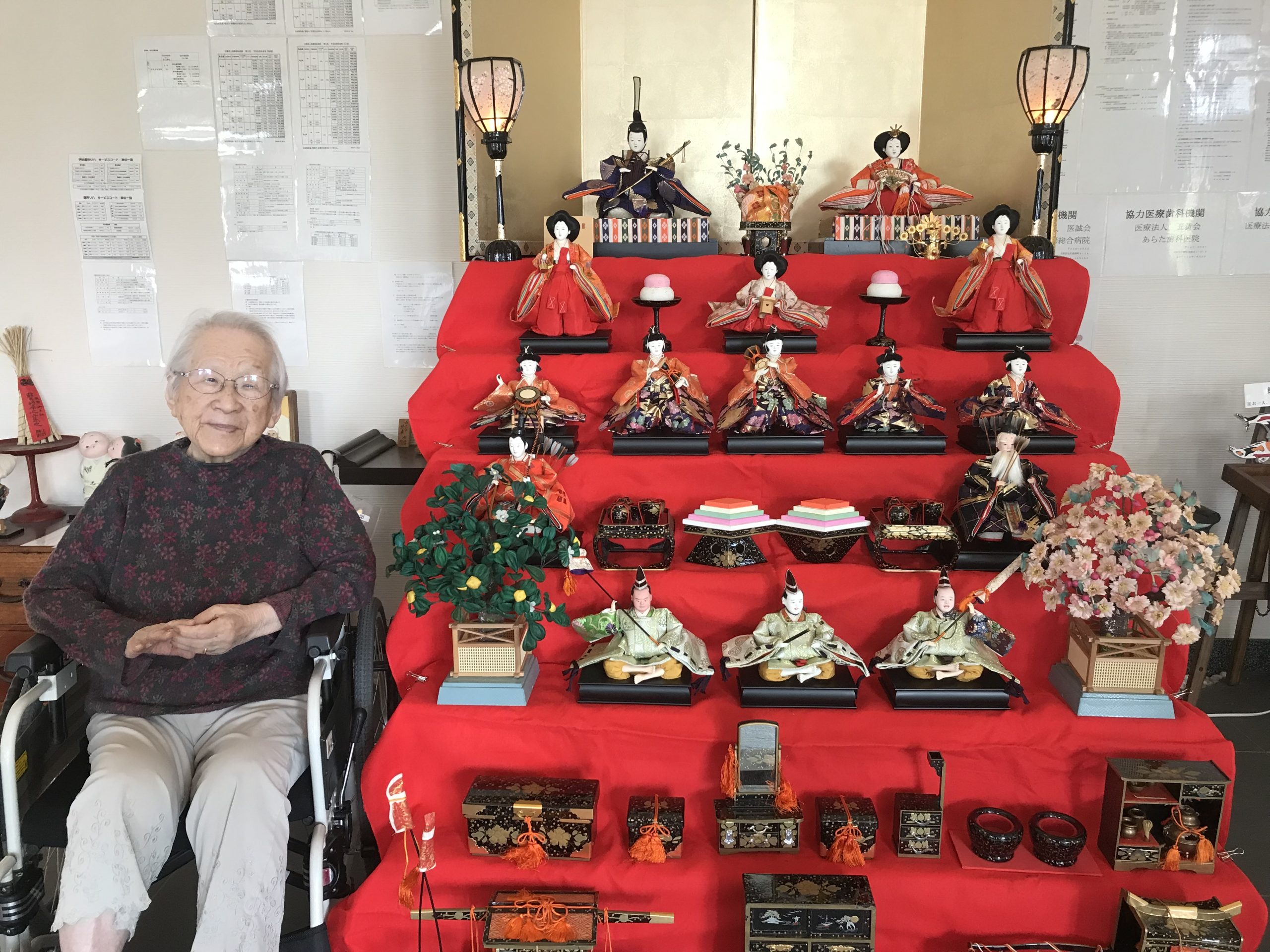 3月に入り、菜乃花の玄関では七段飾りのひな人形🎎が皆さまをお迎えしていました。