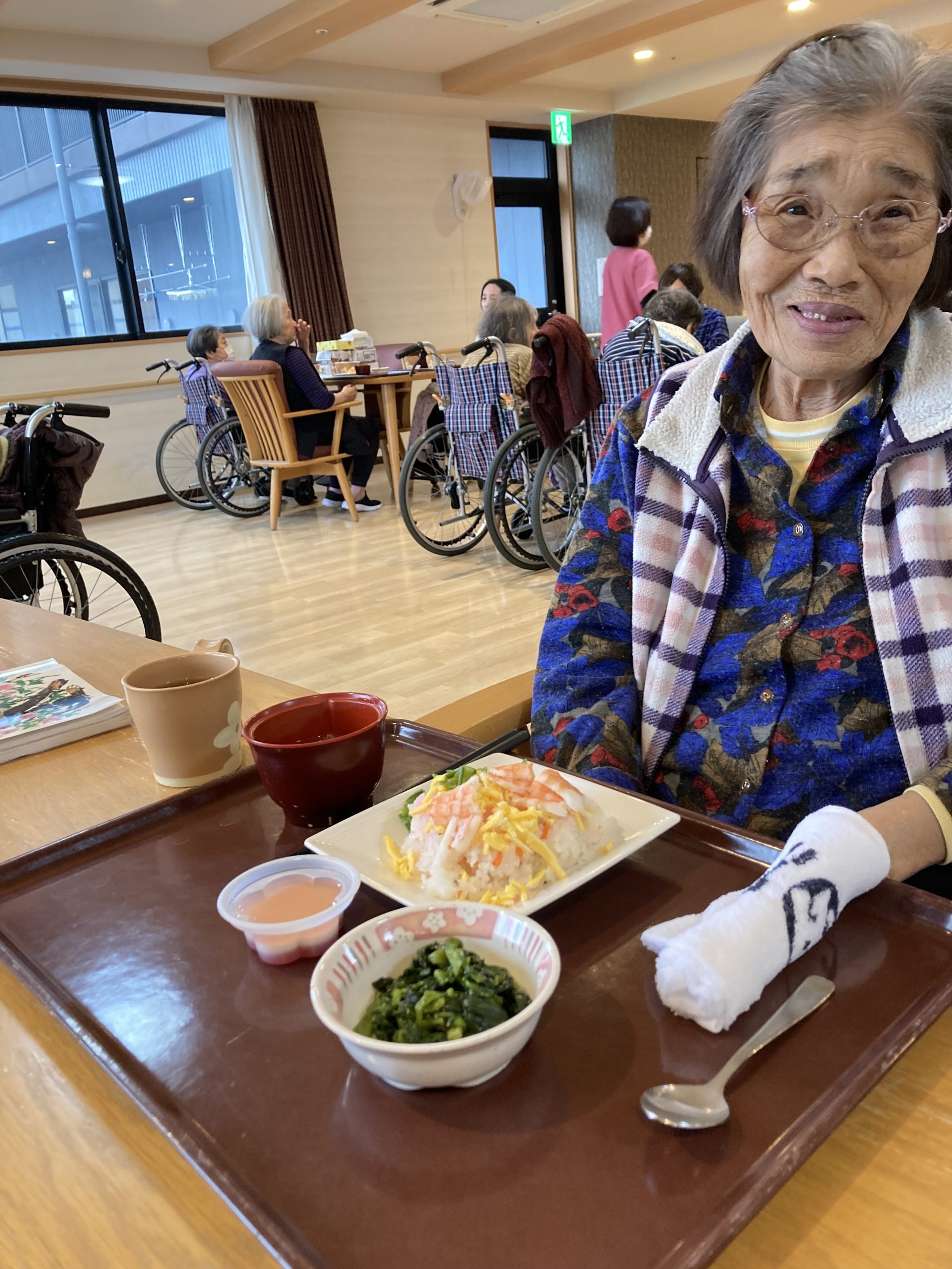「おいしい。」との声も聞かれ、彩り豊かな「ちらし寿司」が皆様の笑顔を引き出してくれました。