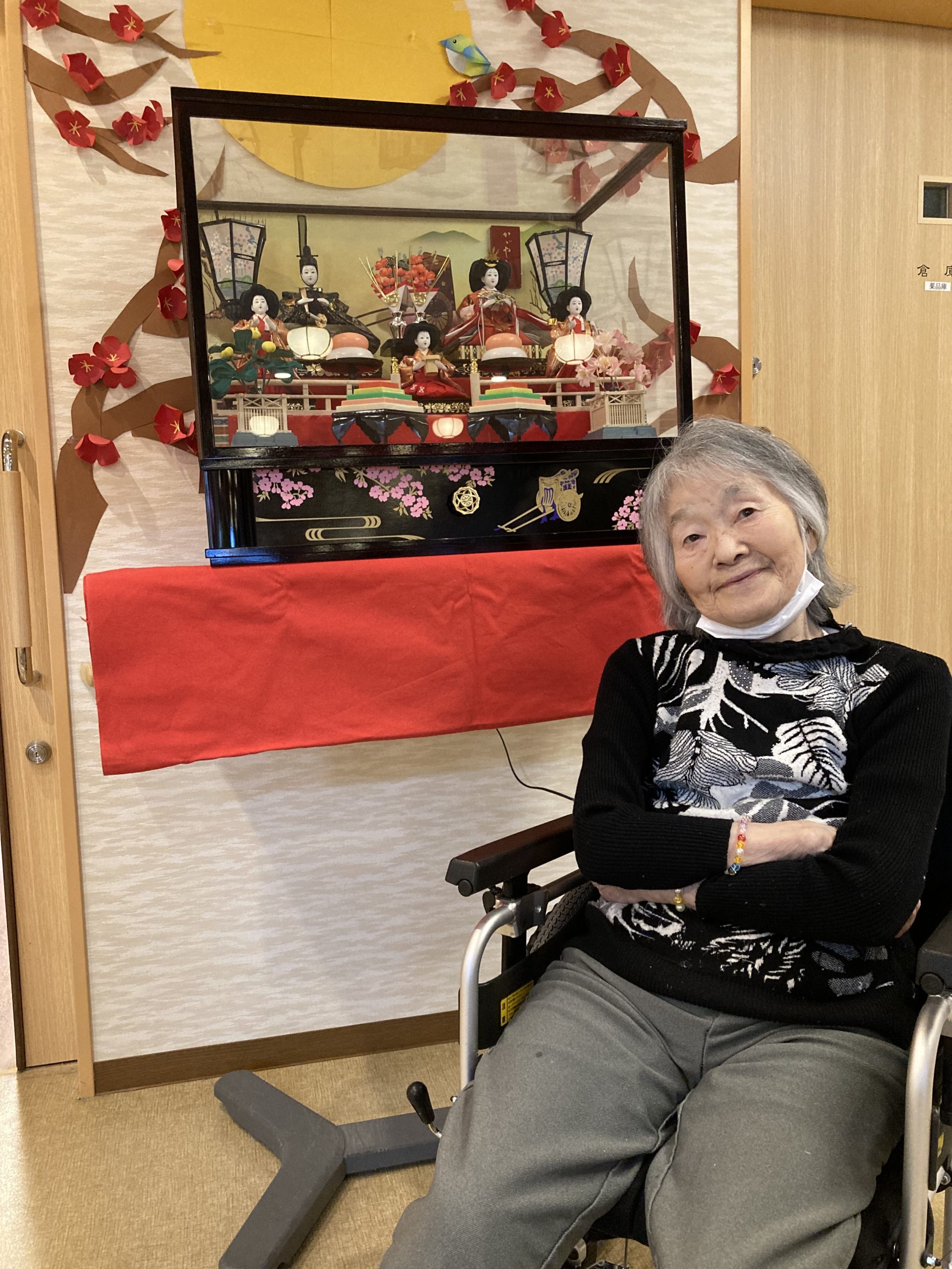 フロアにはネジを回せば「あかりをつけましょ ぼんぼりに♬」の優しいメロディーが流れるひな飾り🎎も設置しました。