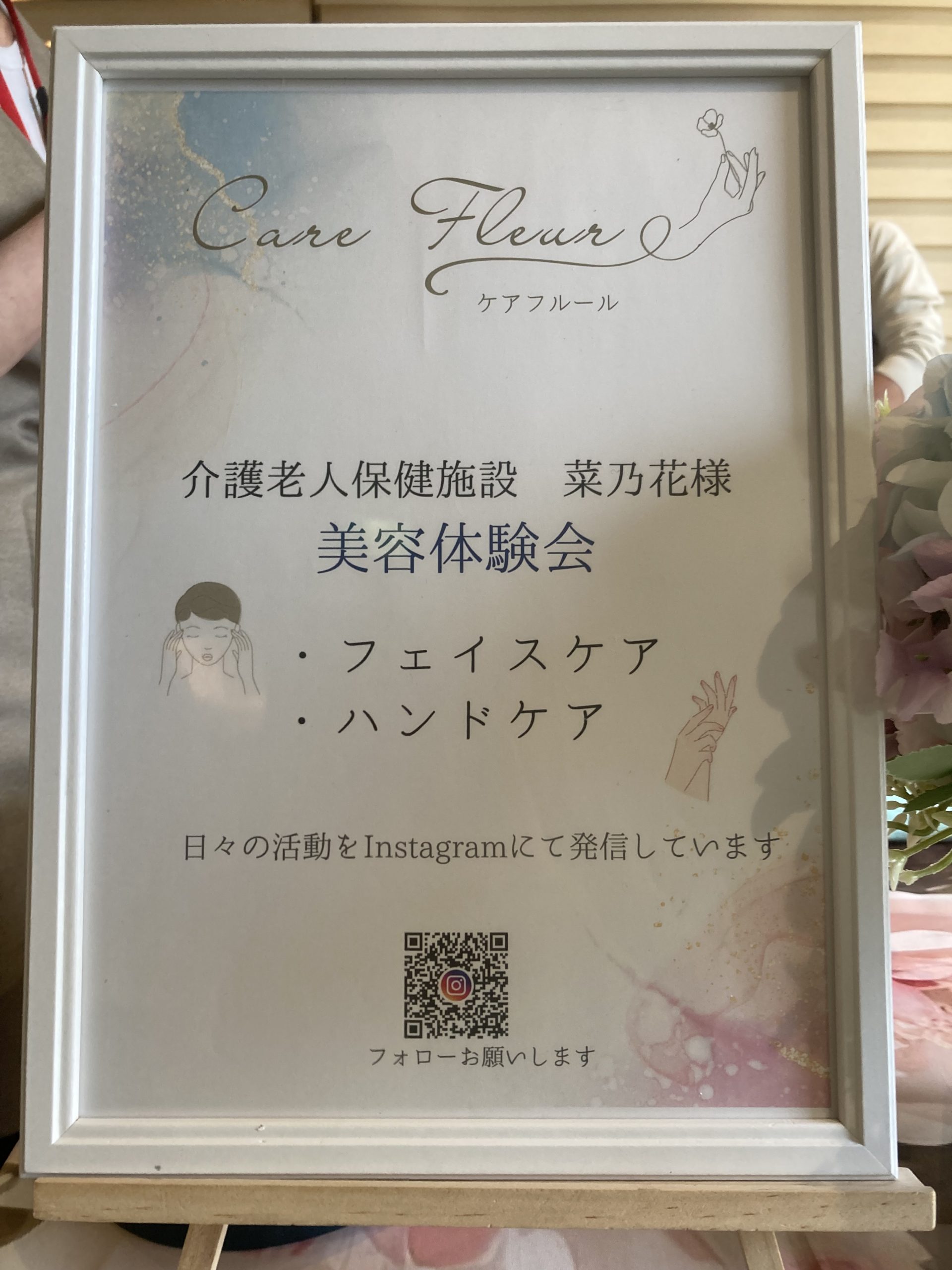 先日、株式会社Mi Fleur様が菜乃花に「介護美容」ボランティア訪問に初めて来てくださいました。