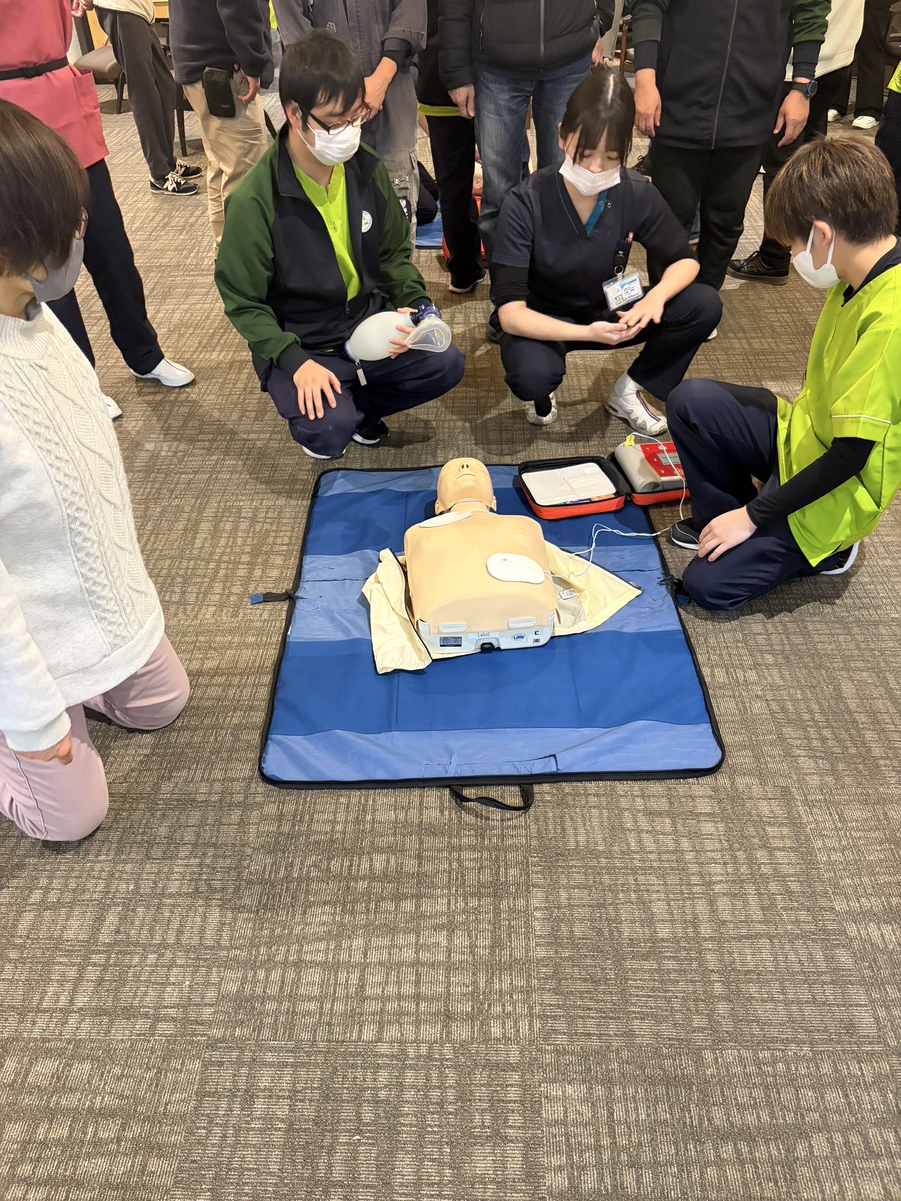 救急救命士の方から「呼吸の見極め方」や「胸骨圧迫の深さやリズム」など大切なポイントを丁寧に教えていただきました。