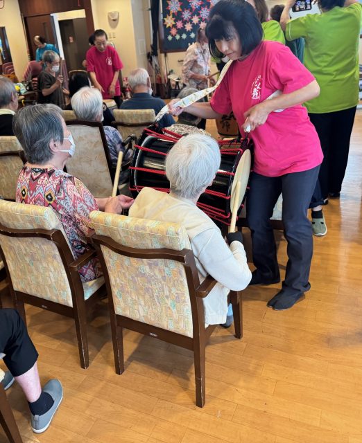 和太鼓のパフォーマンス披露にショートステイのご利用者様も参加させていただきました💕