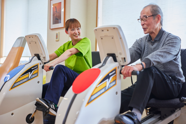 日常生活で使うことが少ない筋肉をマシンを使って無理なく動かすことで身体機能を活性化し、体力を回復します。部位や機能別にトレーニングできるマシンをラインナップ。変形性関節症や骨粗鬆症の方でも関節や骨に負担がかかりにくく、心負担は入浴時よりも軽いといわれているので安心です。