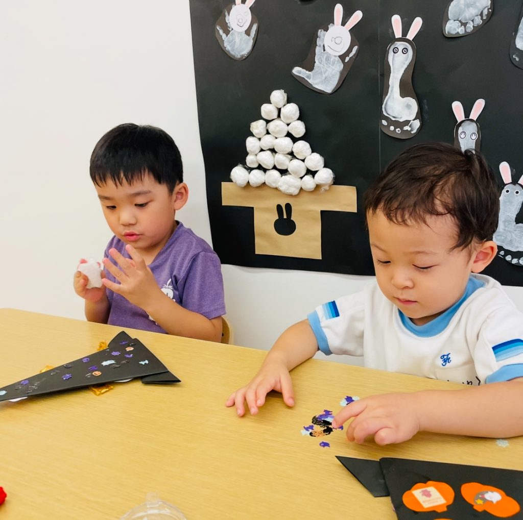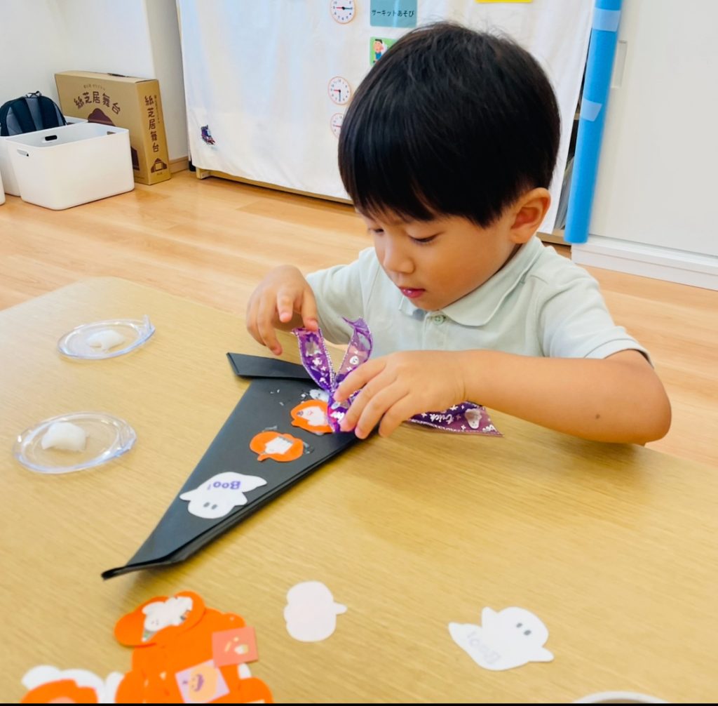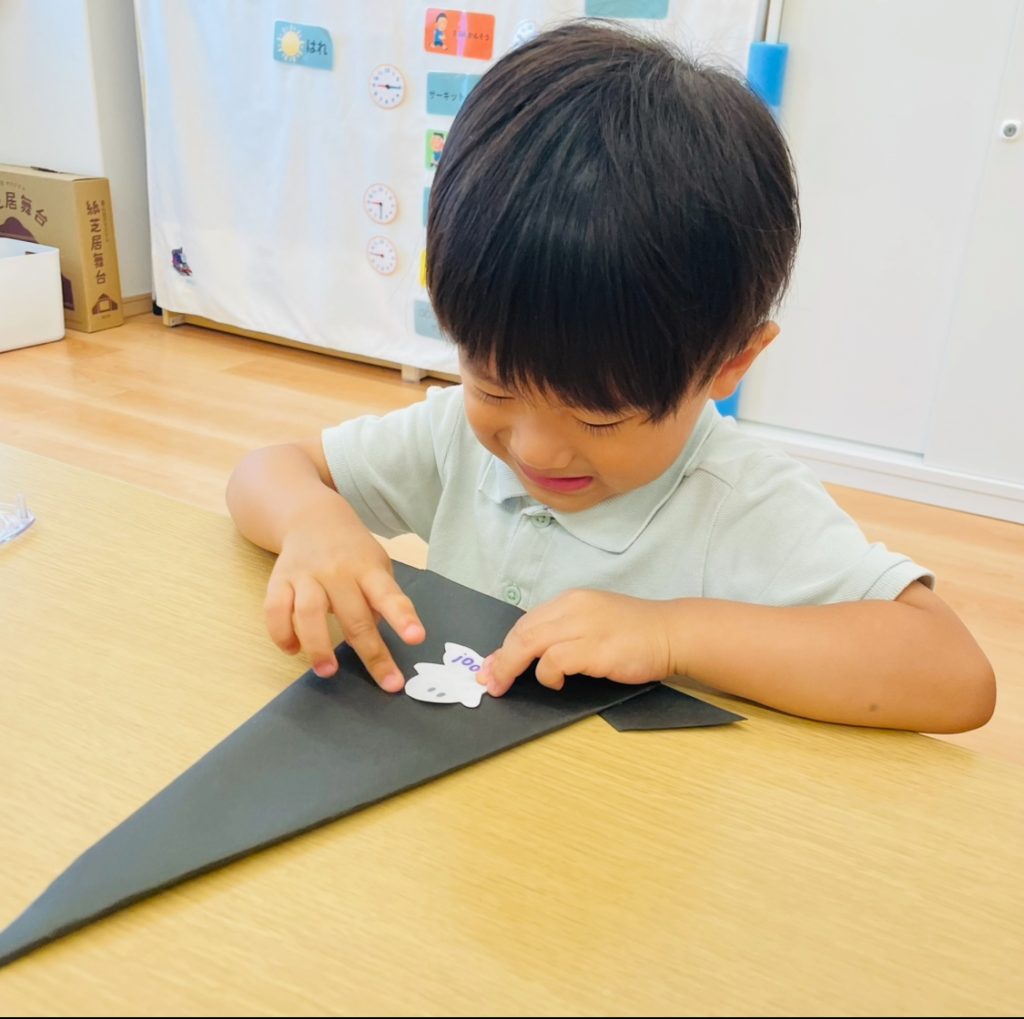 オバケやカボチャ、猫などのクラフトパーツを貼っていくよ~♪