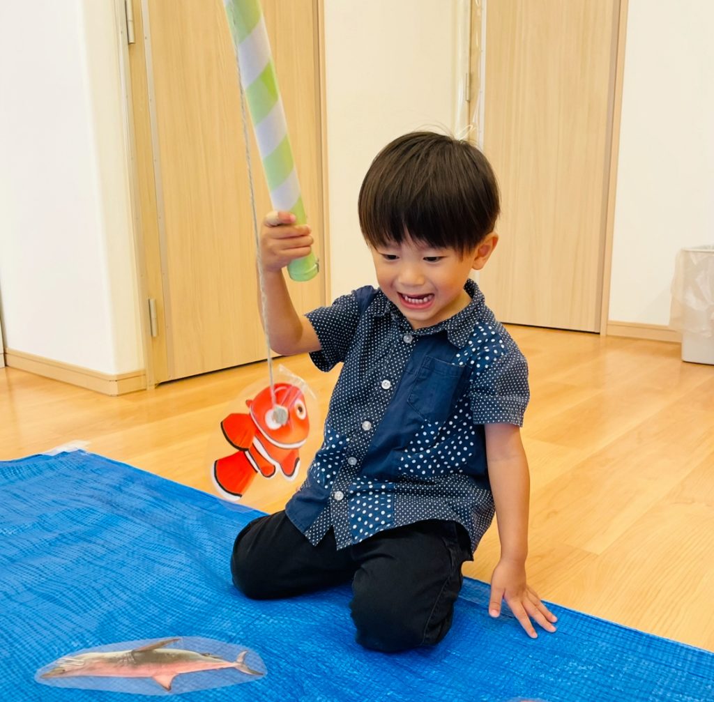 魚釣りあそびを通して、集中して取り組む姿や、