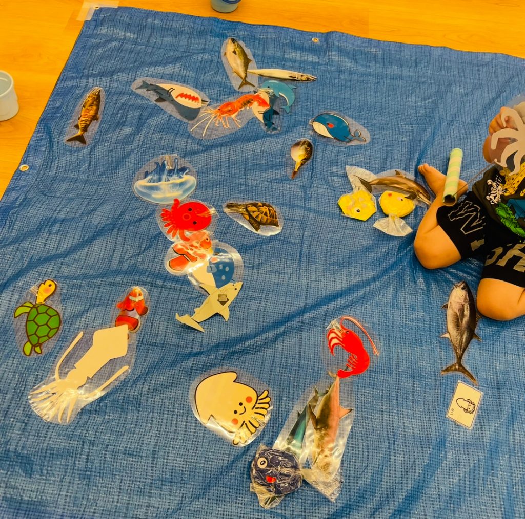 →魚の名前を言ったり、色・大きさなどを話したりして語彙を増やします