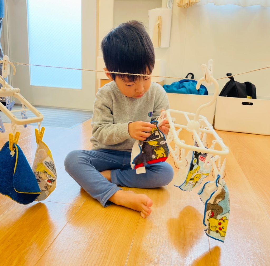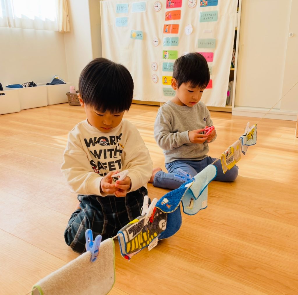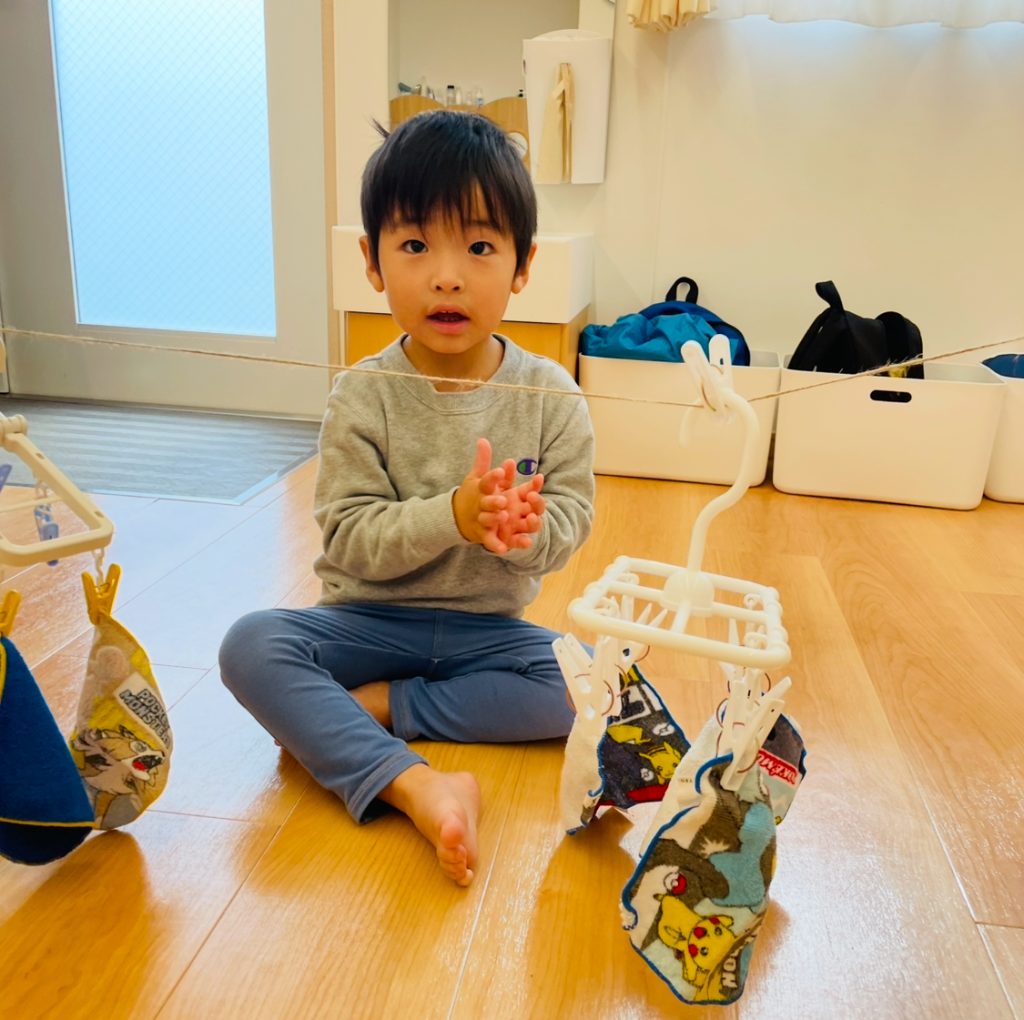 ・洗濯物を「つまむ・伸ばす・はさむ」動作を通して、手と目の協応を促します✨