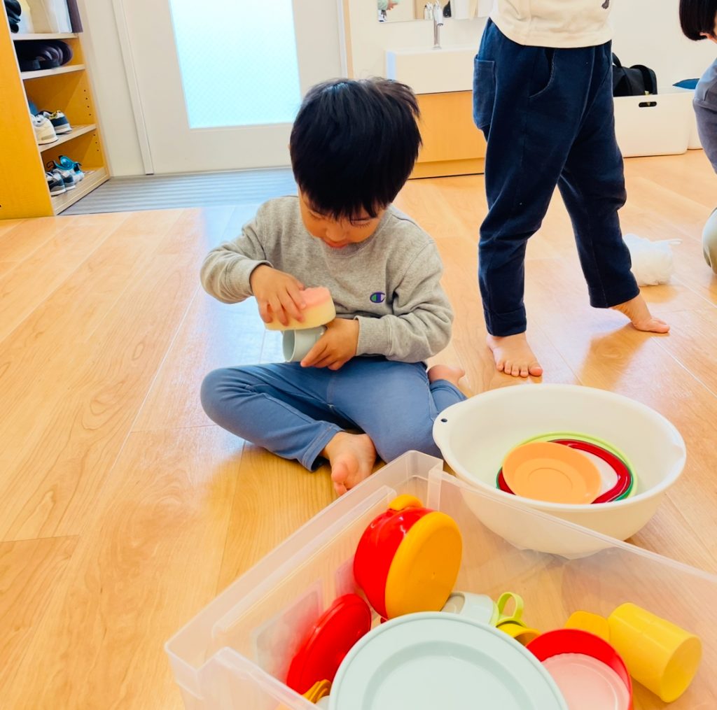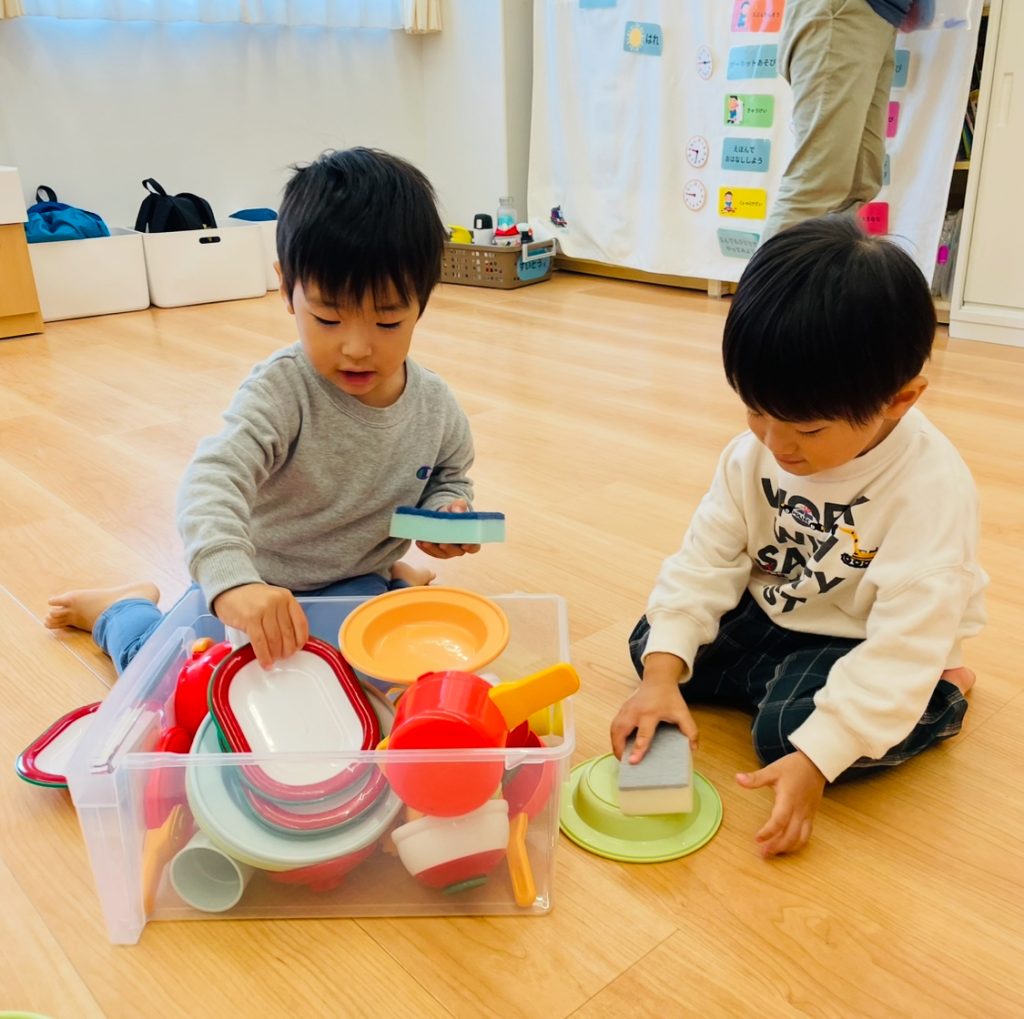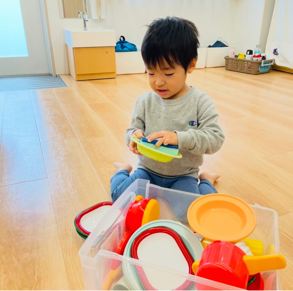 今回は、洗濯物を自分で干す体験&お皿洗いごっこをしました👕