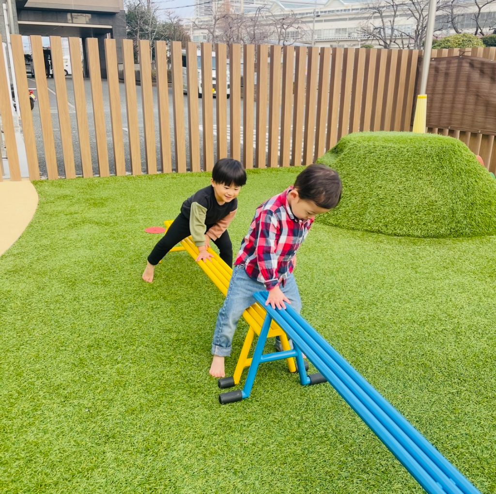 午前も午後も園庭でまずはサーキット遊び!