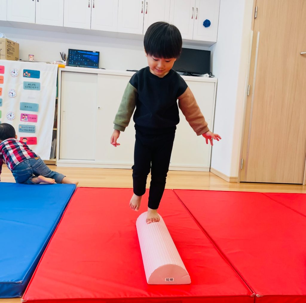 教室に戻ってからは、絵本を読んだり、マットを敷いてバランス遊びをして