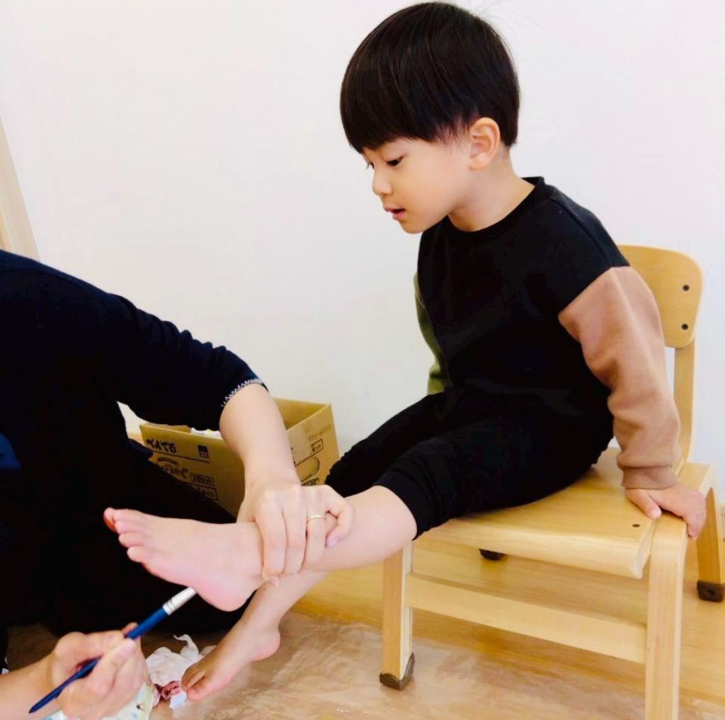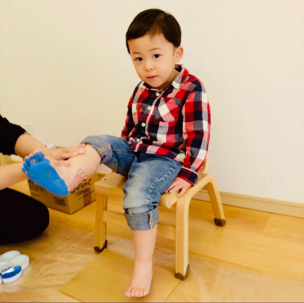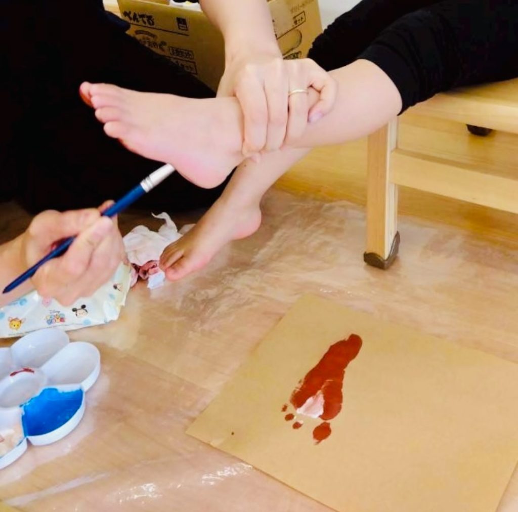 ゆっくり身体を休めたら、今度は絵の具で足形をとっていきます♪