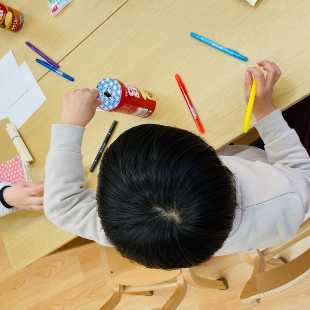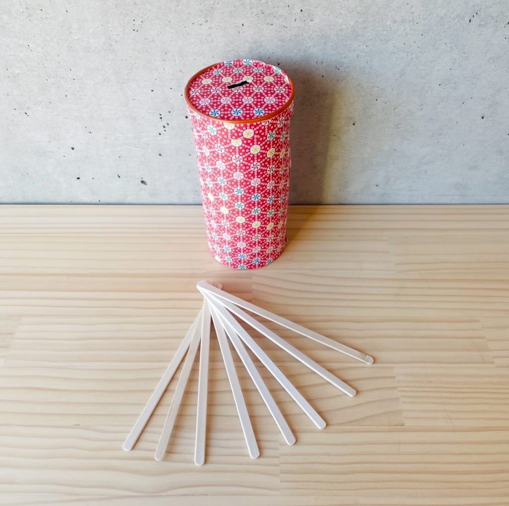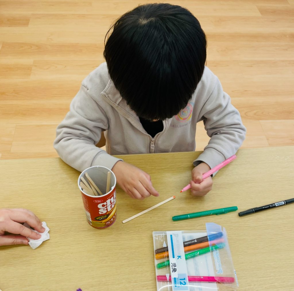 まずは、おみくじ棒を自分たちで作っていきます✨