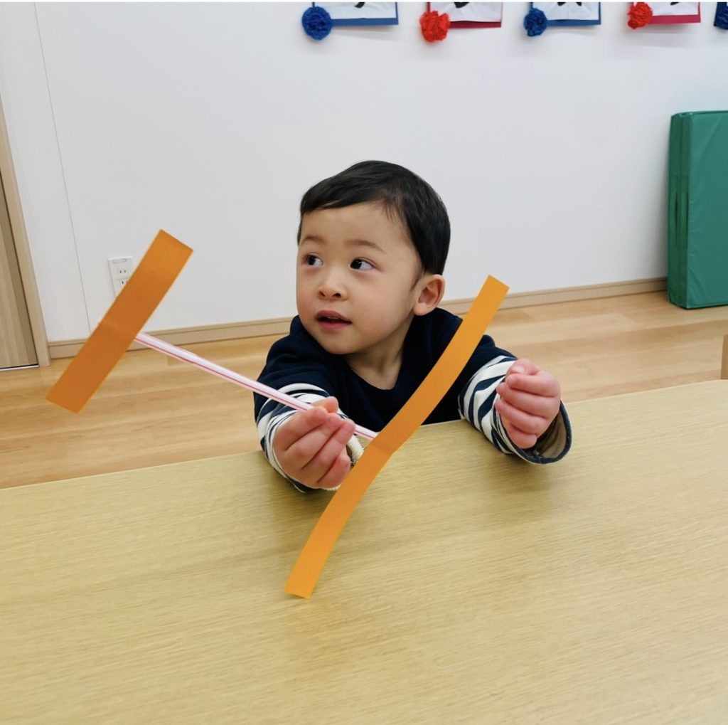 ストロー飛行機として園庭で飛ばして遊びました!