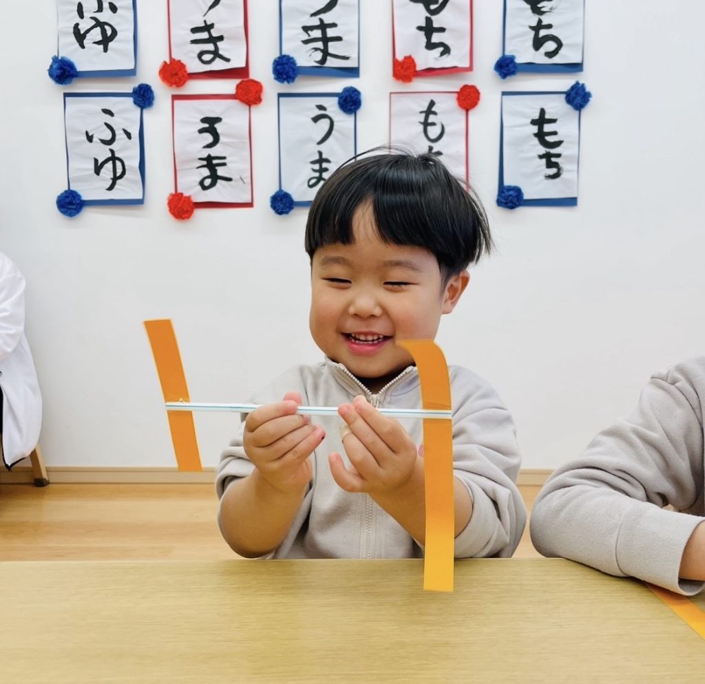 次は、ストローと画用紙を使って、ストロー飛行機を作ります😊