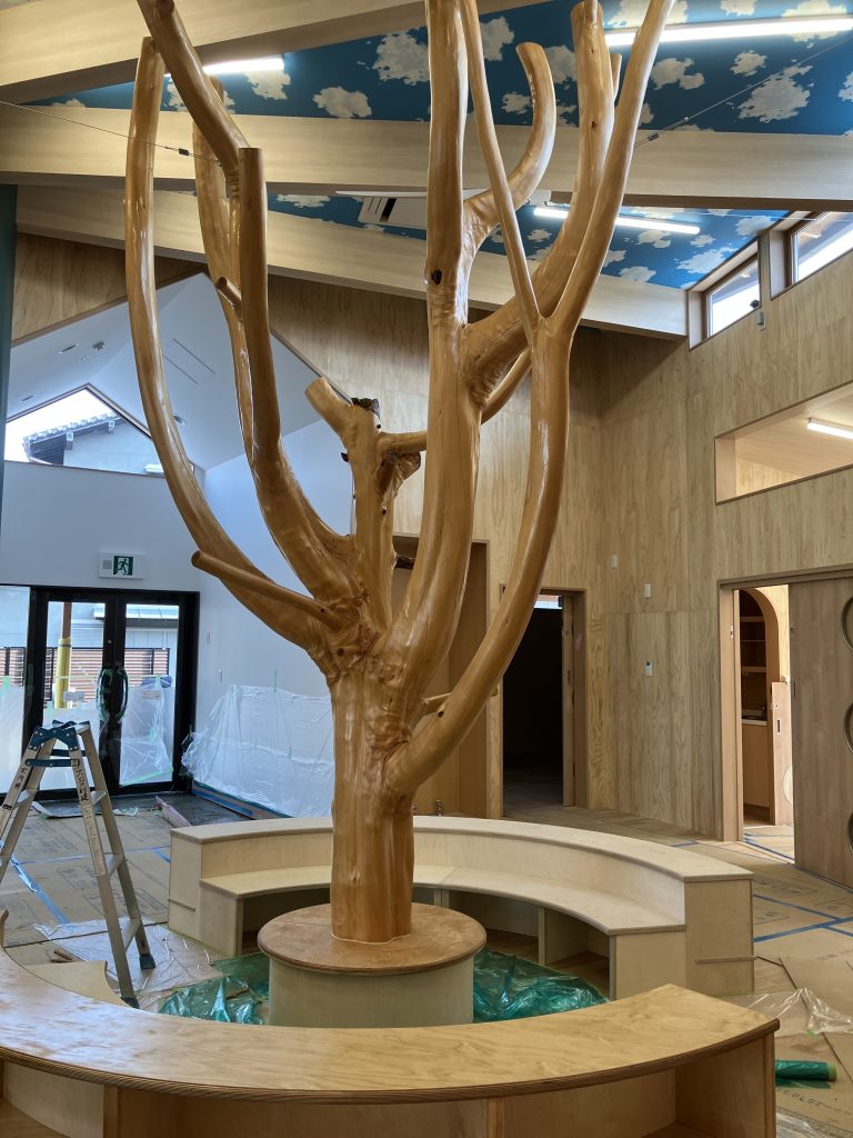 藤井寺野中校では、絵本コーナーで、このシンボルツリー🌳がみんなを優しく見守ってくれます。