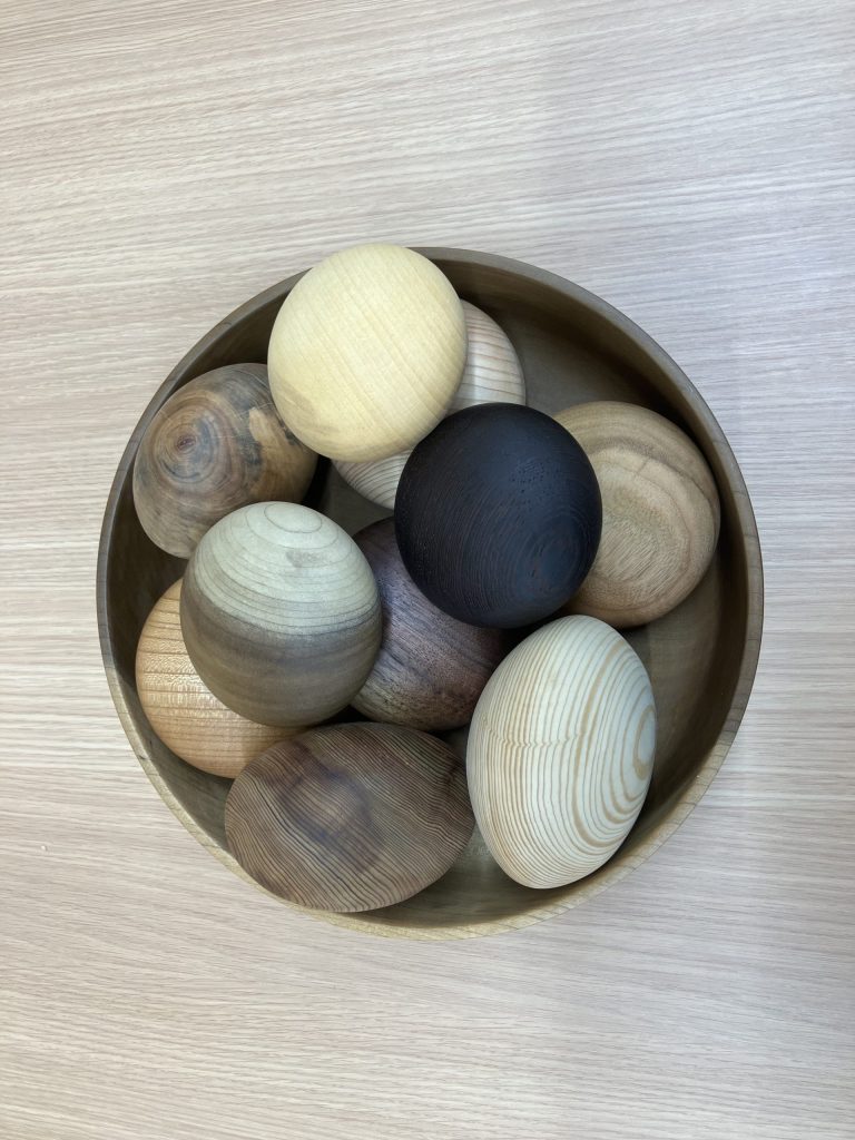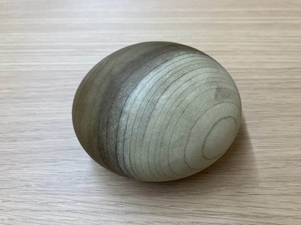 このころころっとした、まぁるくてかわいいフォルム。木を切って削り、やすりをかけてかけてかけて…