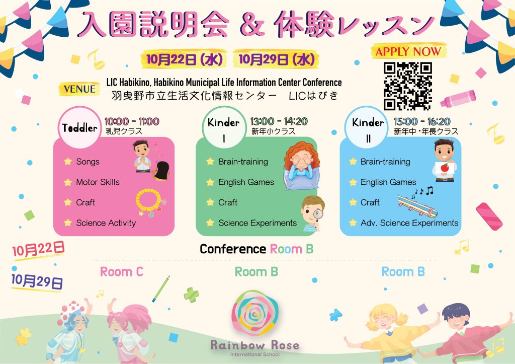 10月より英語講師による入園説明会&体験レッスンがはじまります。
